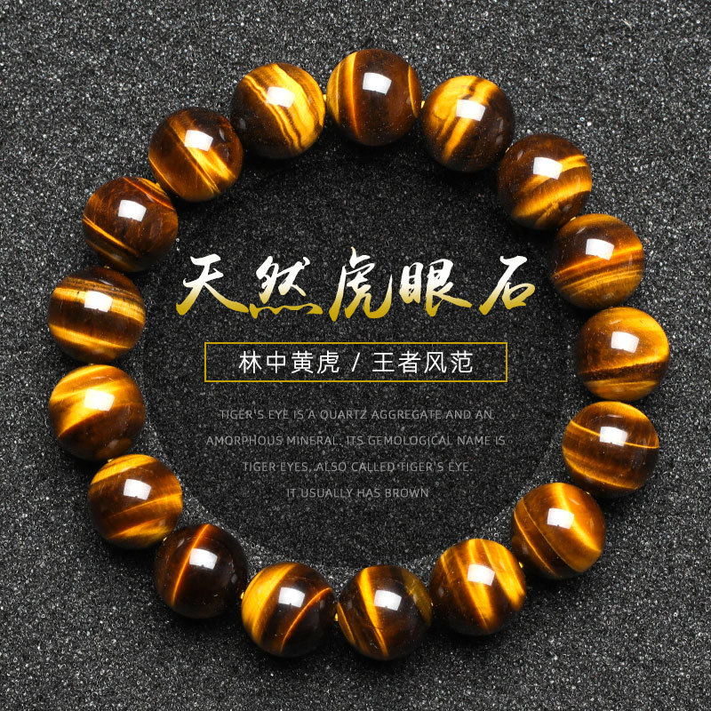 天然黄虎眼石手串男士木変石虎眼石ブレスレット女数珠男