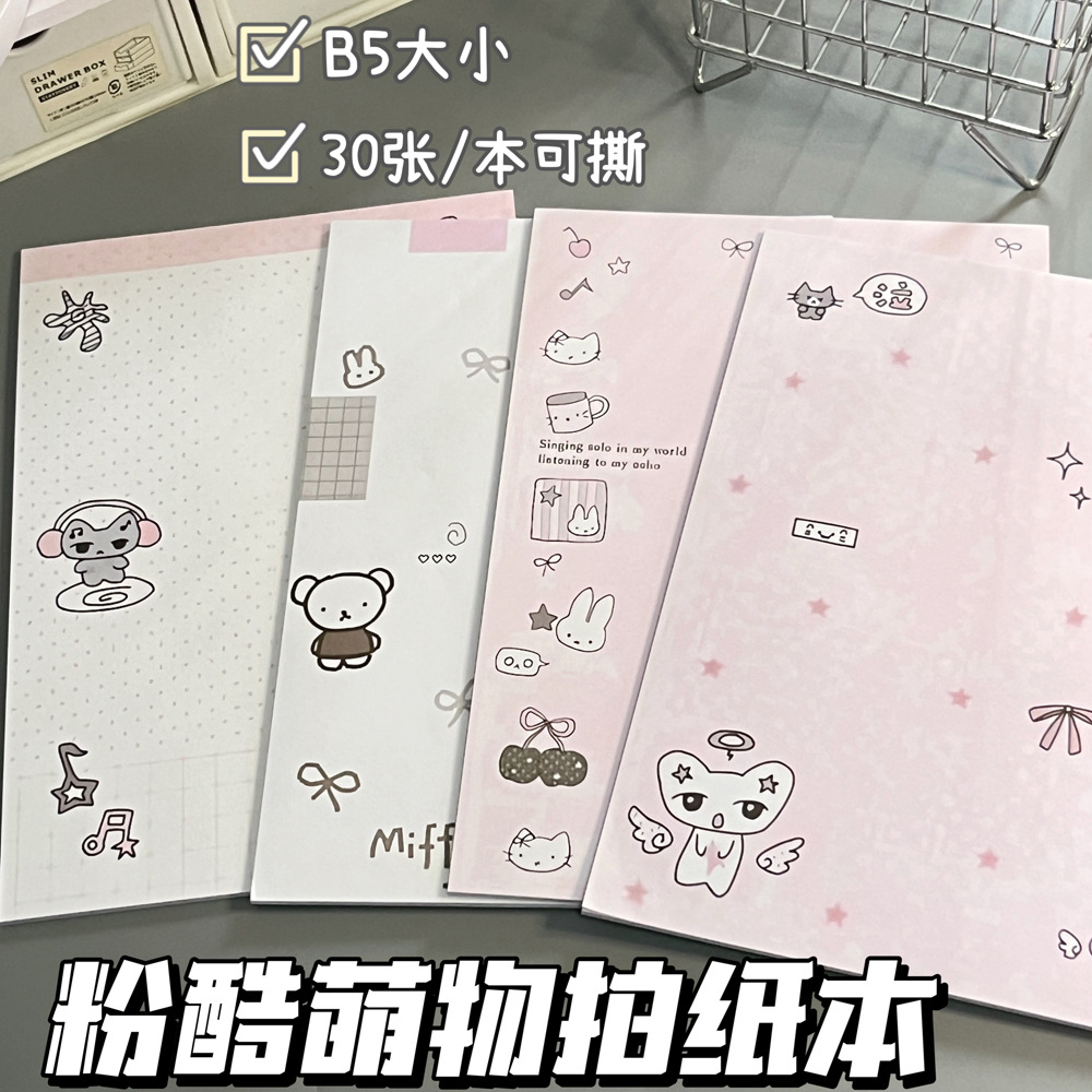 粉酷萌物笔记本拍纸本横线本文具可撕便签本学生草稿本子B5加厚