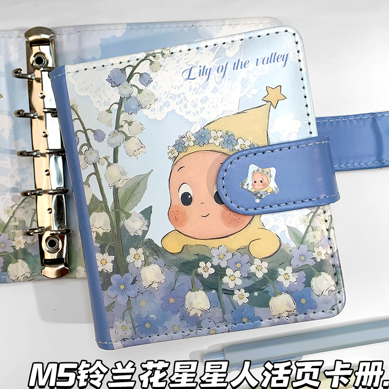 可爱铃兰花星星人M5手账本潮玩卡通磁扣本子活页卡册笔记本可拆卸