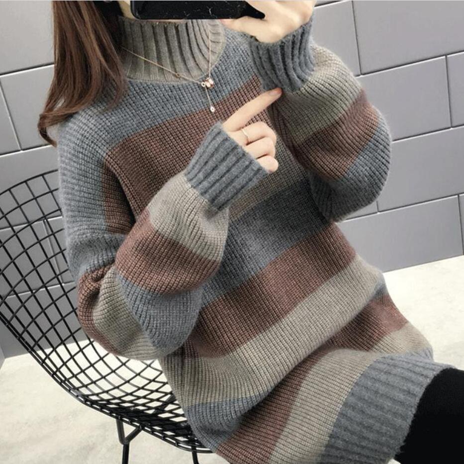 冬のタートルネックのセーターの女性はゆったりとしていて、秋冬の長袖を厚くしています。