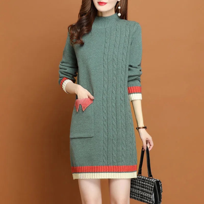 2025新款高领加厚中长款女士毛衣女外穿秋冬慵懒风宽松打底衫长款