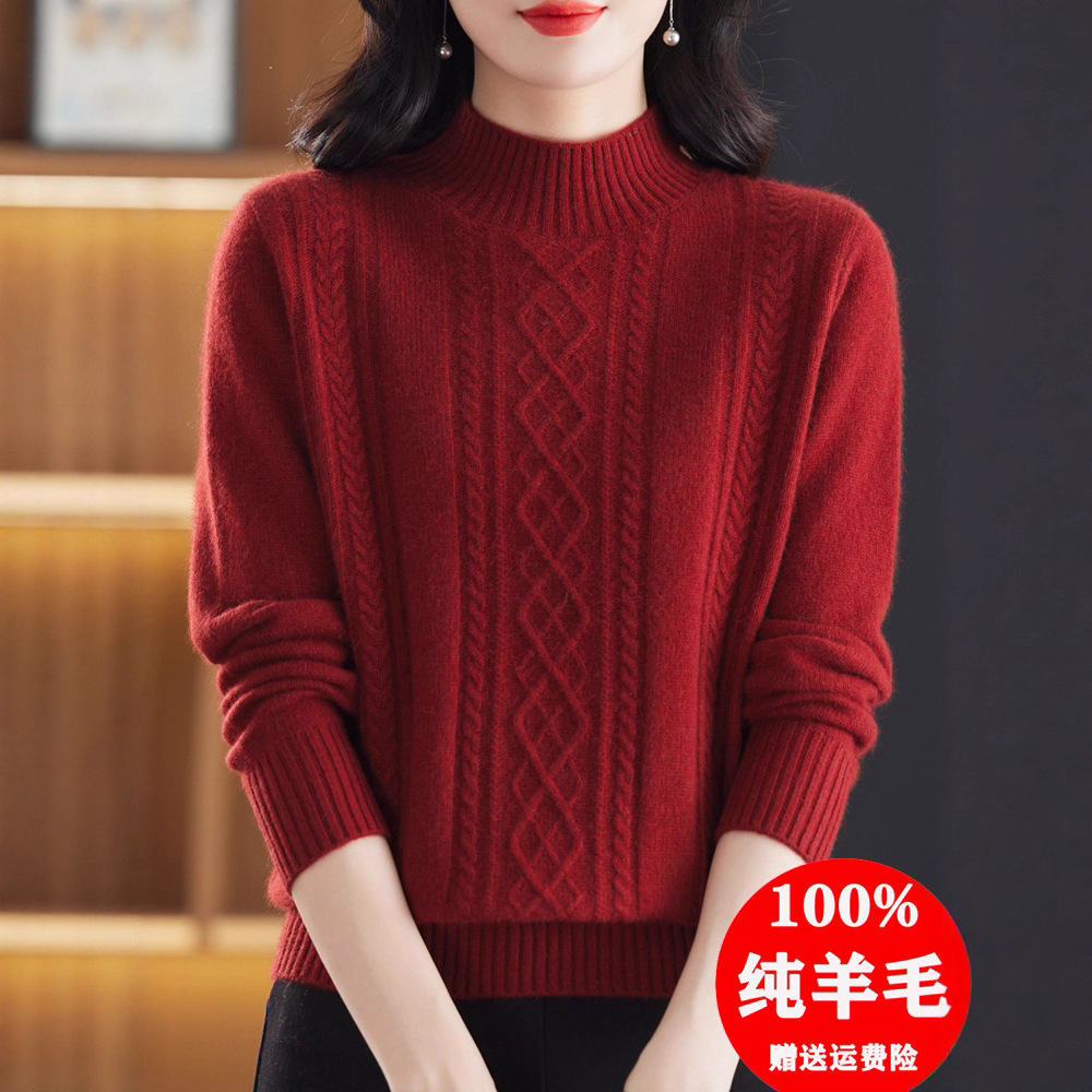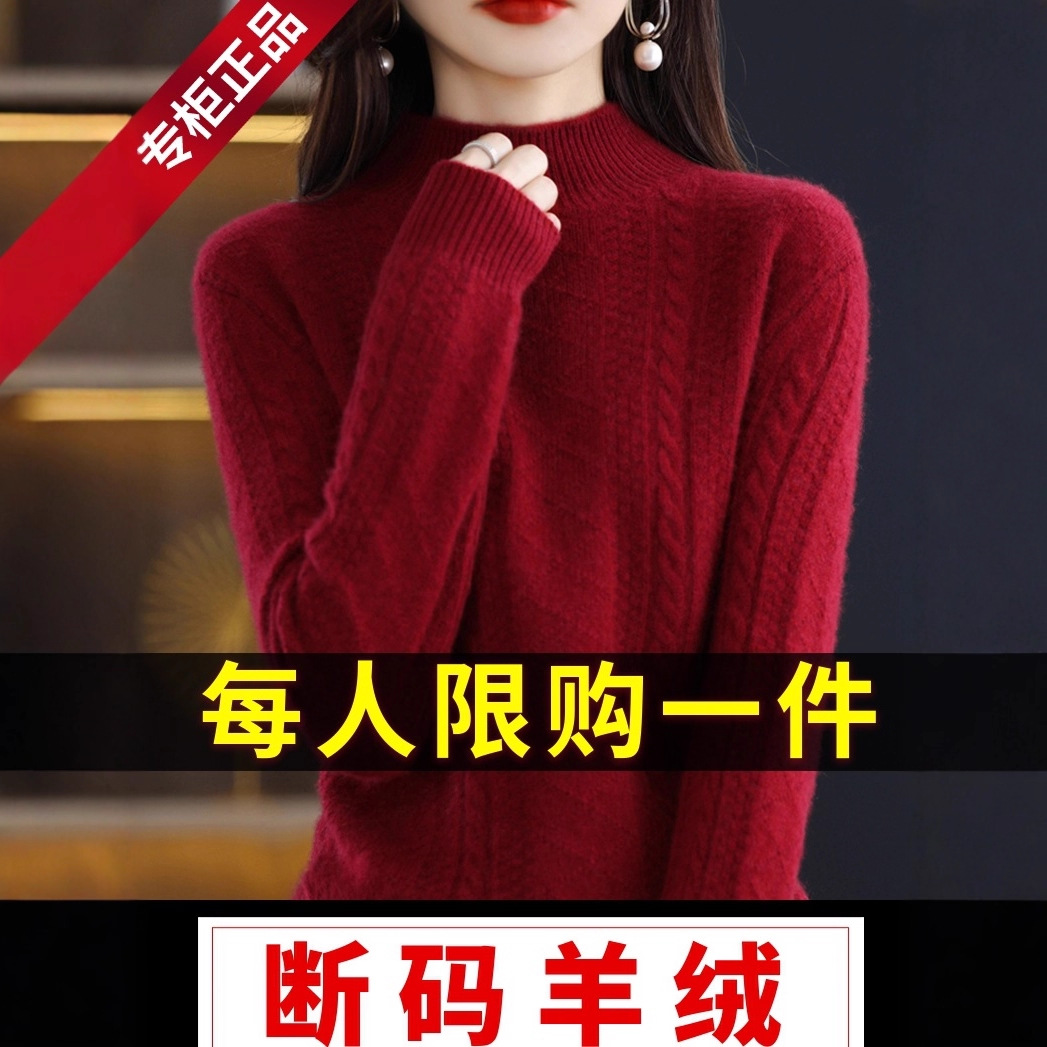 羊毛衫女软糯加厚毛衣冬季半高领宽松打底衫洋气妈妈装上衣