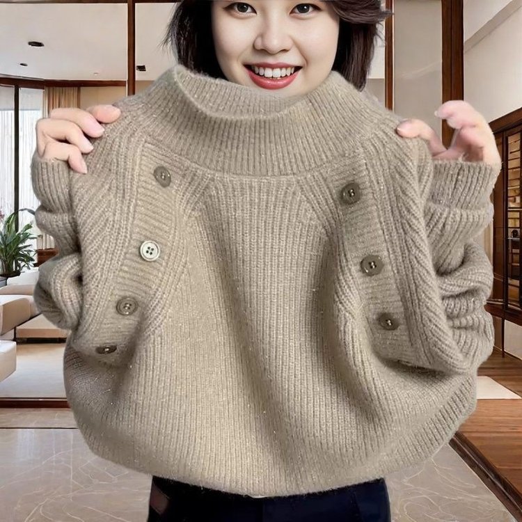 今年は高襟の女性セーターが流行しています。2024秋冬の新しい爆発金はゆったりしています。