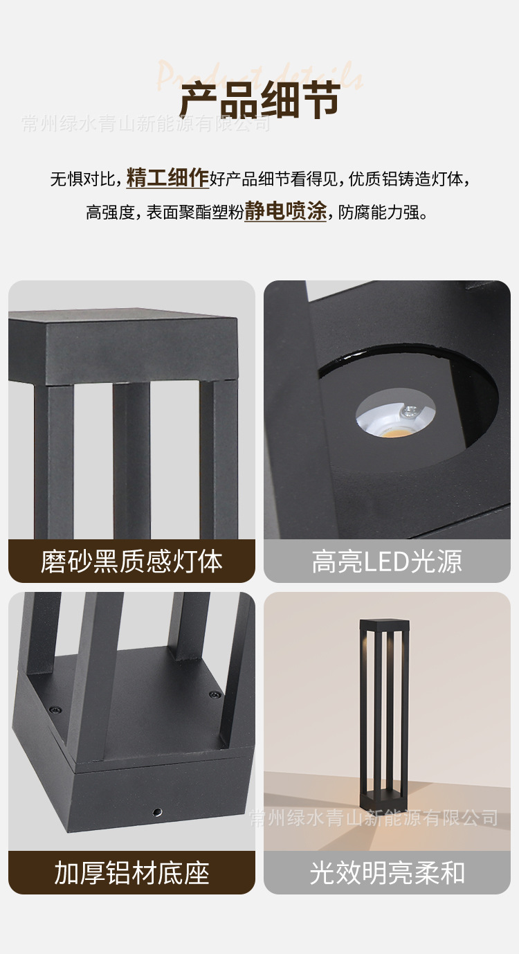 中山メーカー製LED屋外防水ガーデンライト、別荘庭園柱頭灯、モダンシンプルソーラー芝生灯
