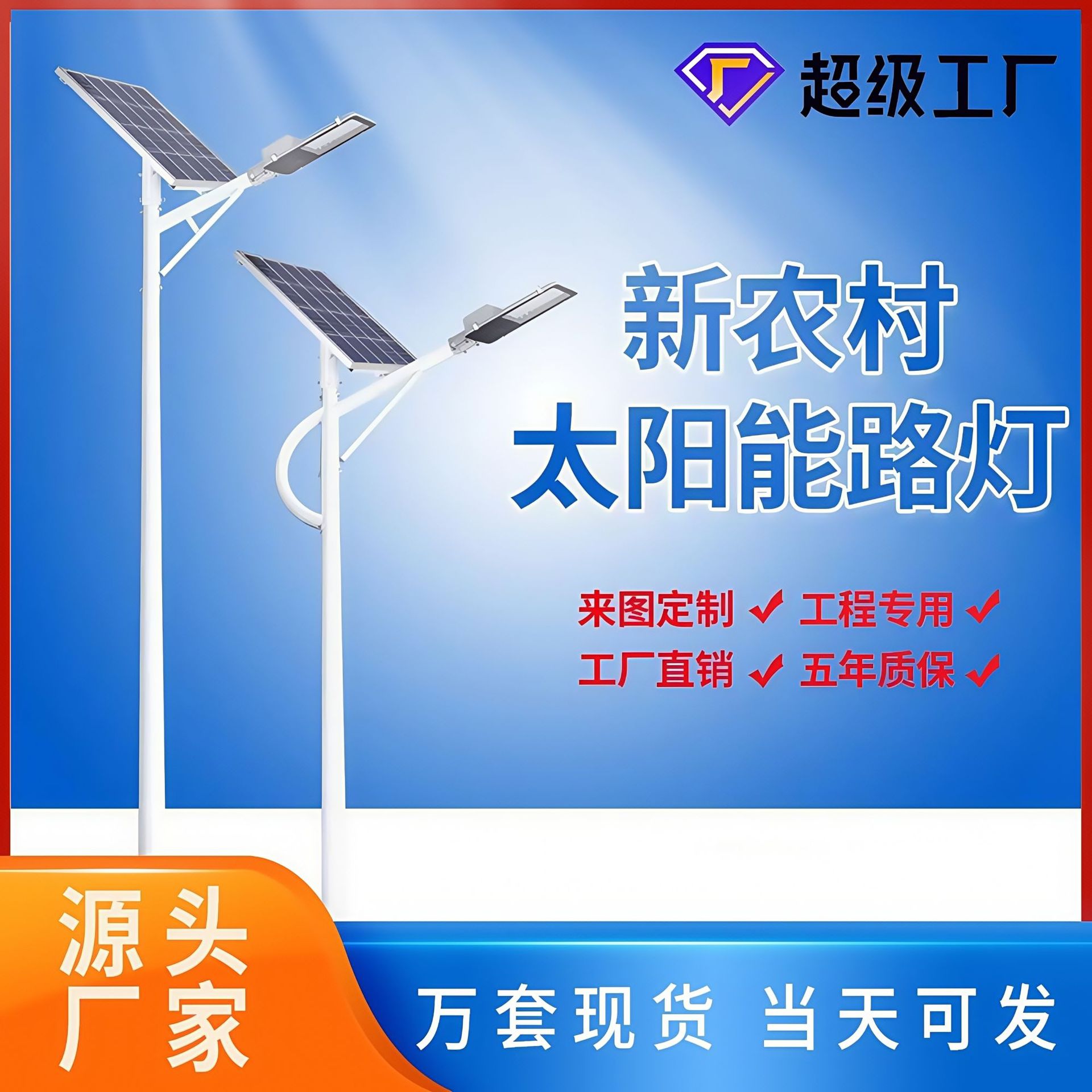 ソーラー街路灯 6mLED 照明ガーデンライト 新しい田舎の都市開発 シンプルなブラケット 屋外メーカー Jindou