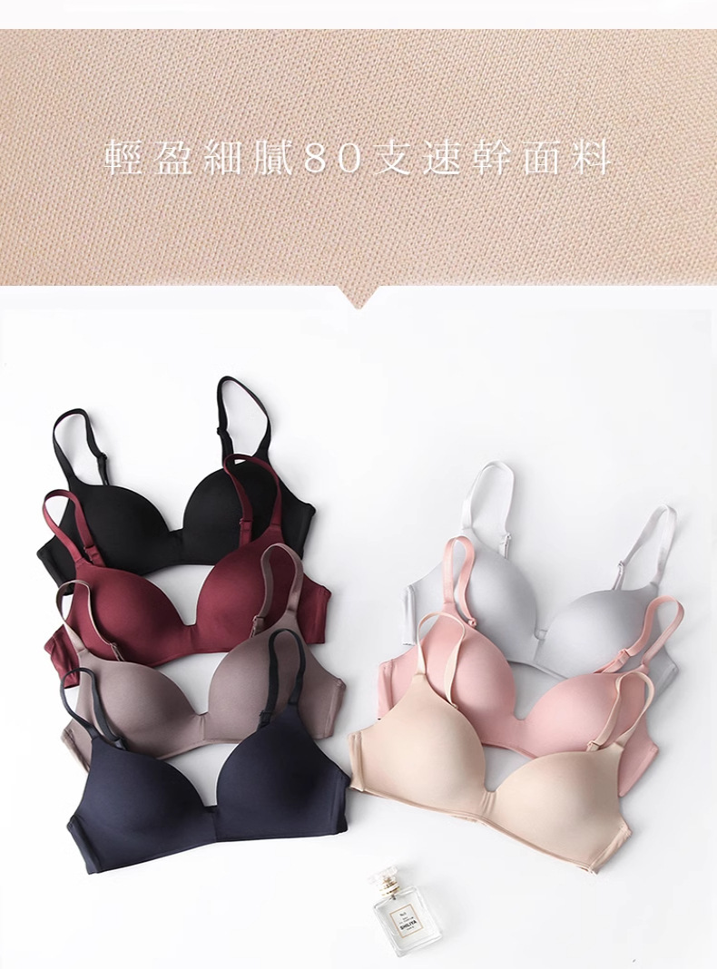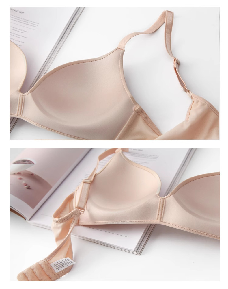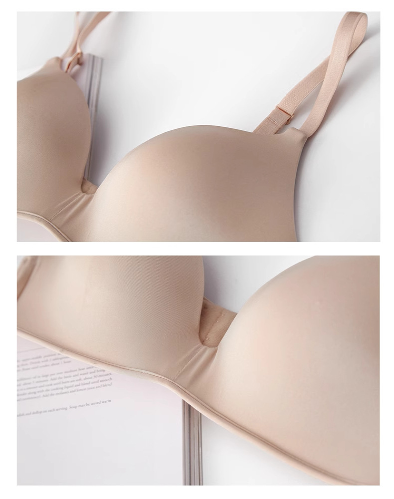 英国風レターデザインワンピース型シームレスレディースブラ、ノンワイヤー、上向きサポート、小胸用厚カップブラジャー