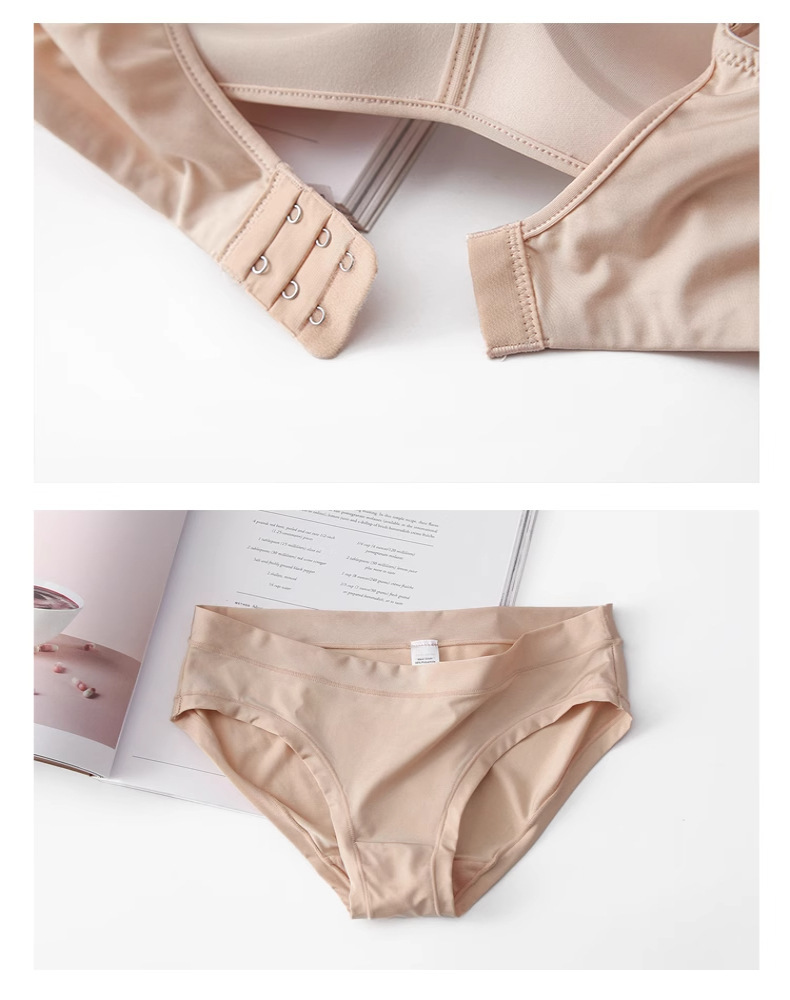 日本製美背前開きブラジャー、ノンワイヤー、大きい胸を小さく見せる、シームレスブラ、レディース光沢感のあるプッシュアップシームレスブラ