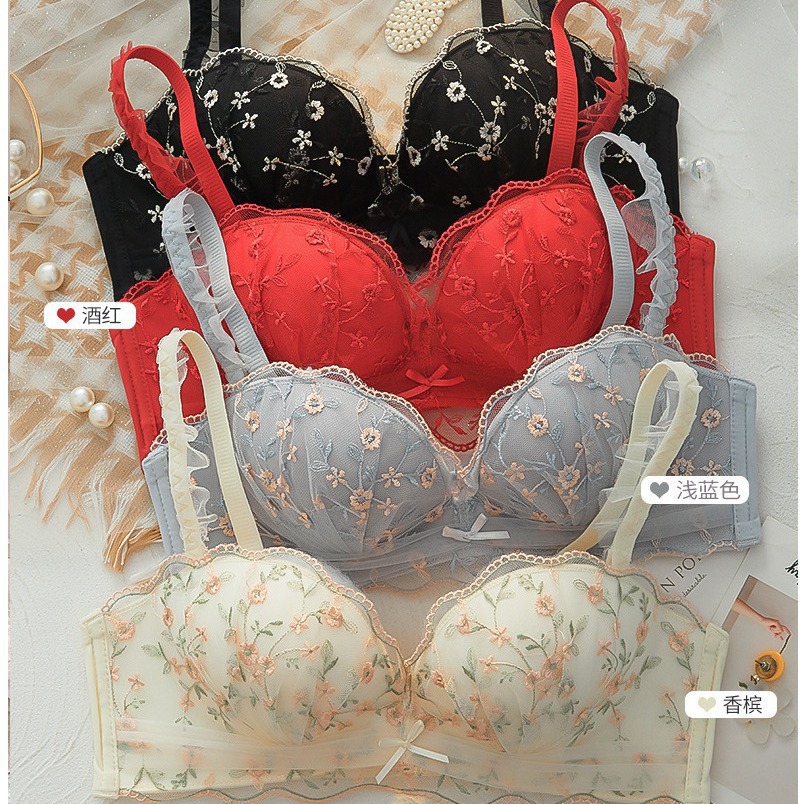 フランス風レースブラジャー、小胸女子向け、バストアップ、ノンワイヤー、垂れ防止、赤色、シームレス、セクシー、本命年用下着、女性用