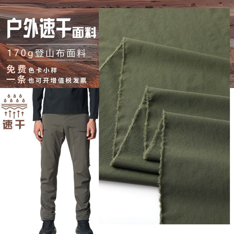 登山裤面料170G毛巾底登山布透气快干防泼水运动裤宽松裤风衣布料