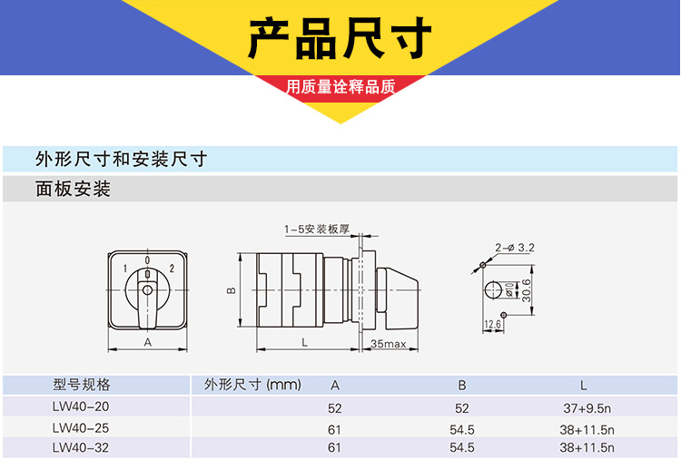長信万能変換スイッチLW5D-16 yh 3/3 yh 2/2 16a 3段切替組み合わせ回転スイッチ