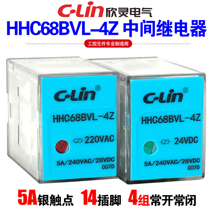 欣霊牌HHC68BVL-4Z AC220V dc 24v 5a中間電磁リレーHH54P 14ピン