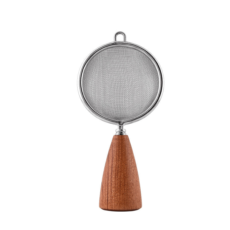 304ステンレス抹茶網ふるい、豆乳フィルター、網ふるい、ベーキングツール、キッチン木製ハンドル、ジュースふるい