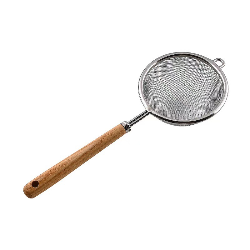 304フィルターネット木製ハンドルフィルタースプーン、サビリ木製ハンドルザル、離乳食フィルタースプーン、小麦粉ふるい、片耳/両耳、在庫あり