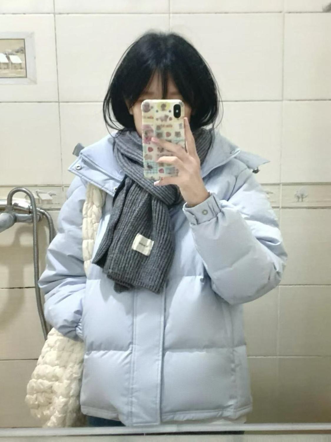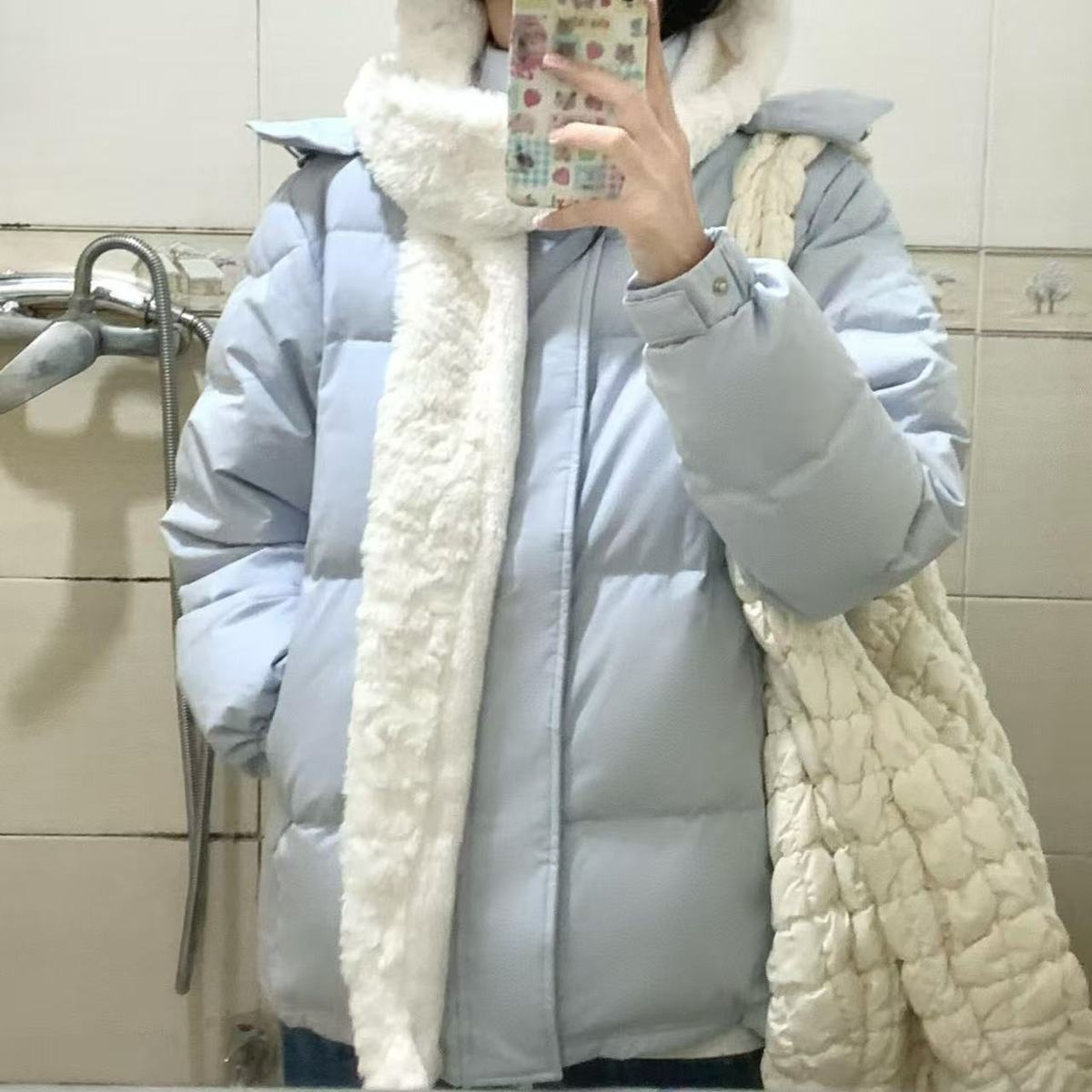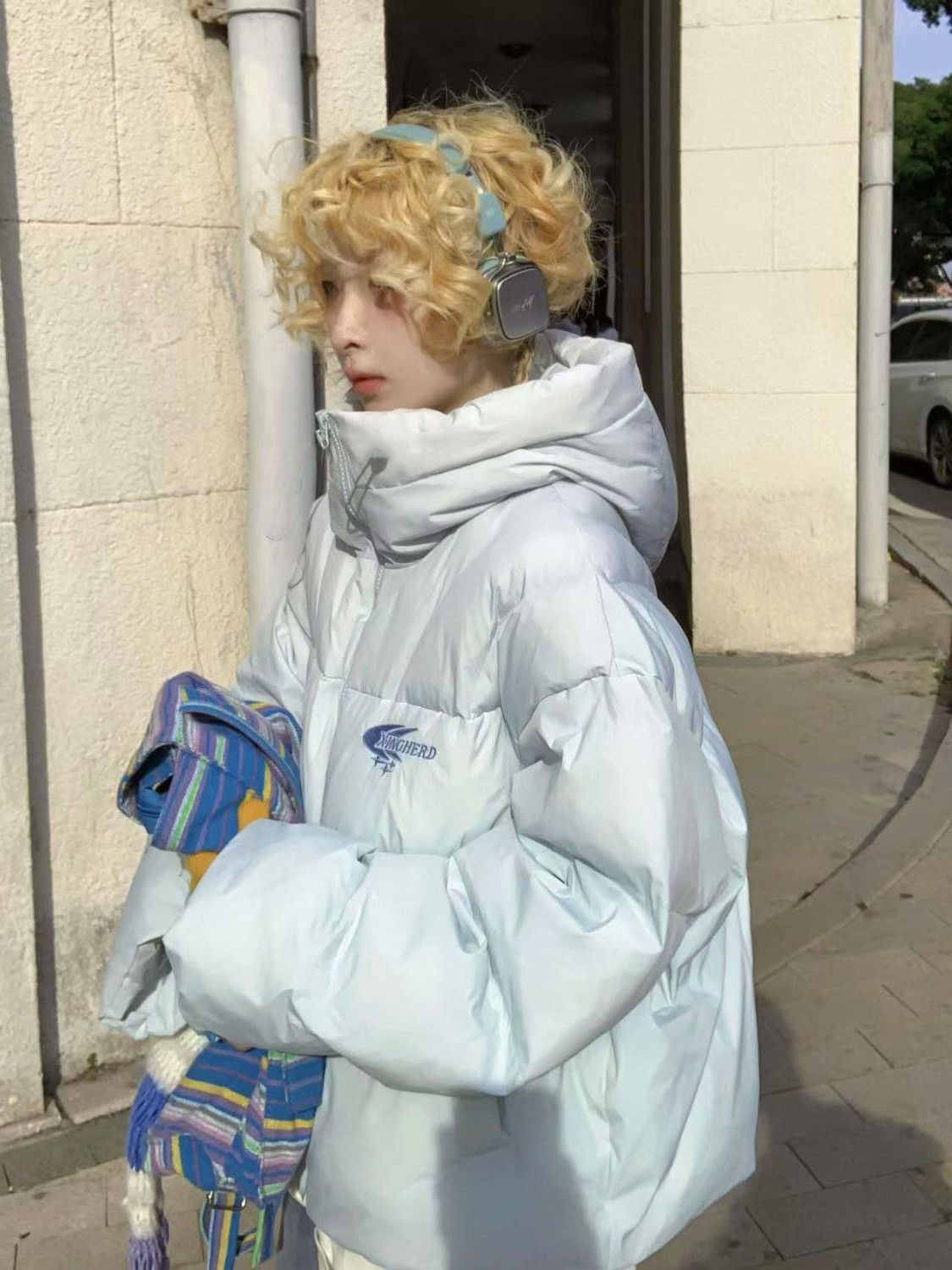 怠惰な風が白いミルクブルーの帽子付き綿服コート女子学生冬の新しいゆるいファッション保温パン服