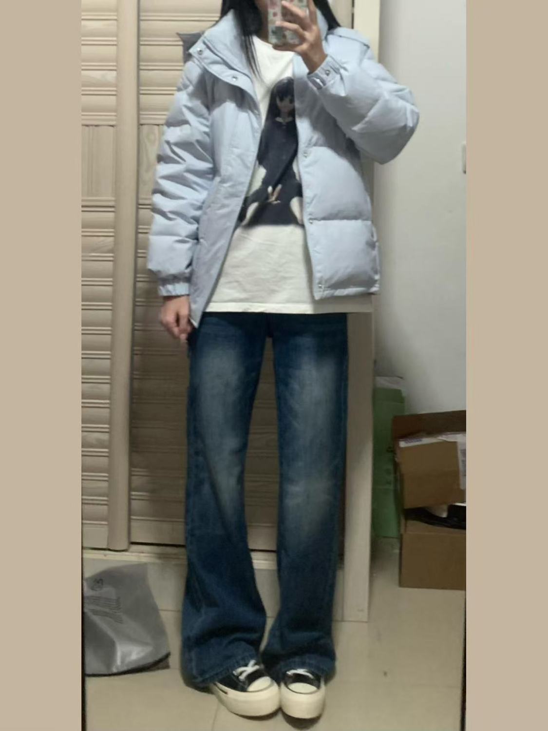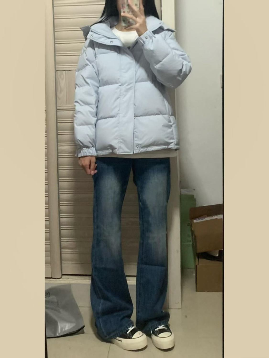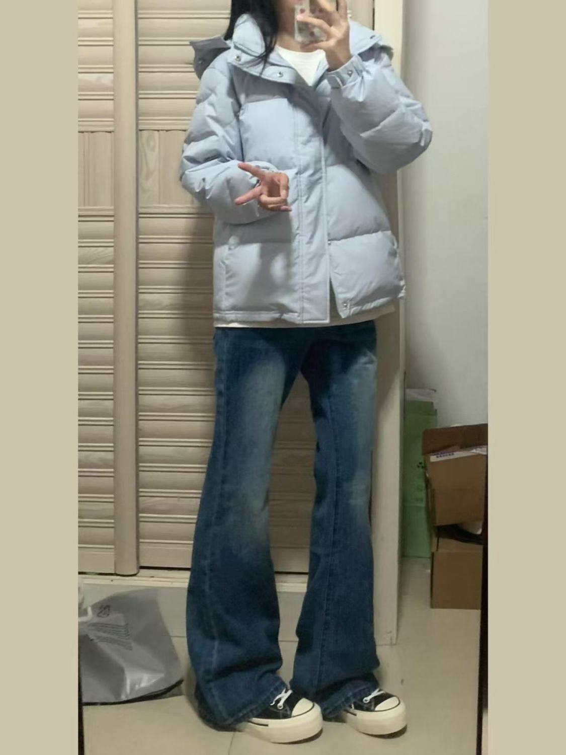 怠惰な風が白いミルクブルーの帽子付き綿服コート女子学生冬の新しいゆるいファッション保温パン服