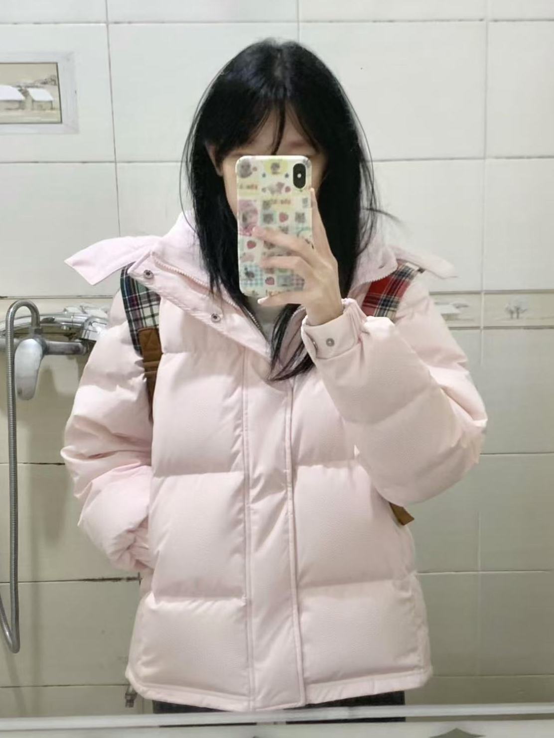 UNMUN日系冬季新款温柔风减龄甜美粉色毛领棉服外套女设计感连帽