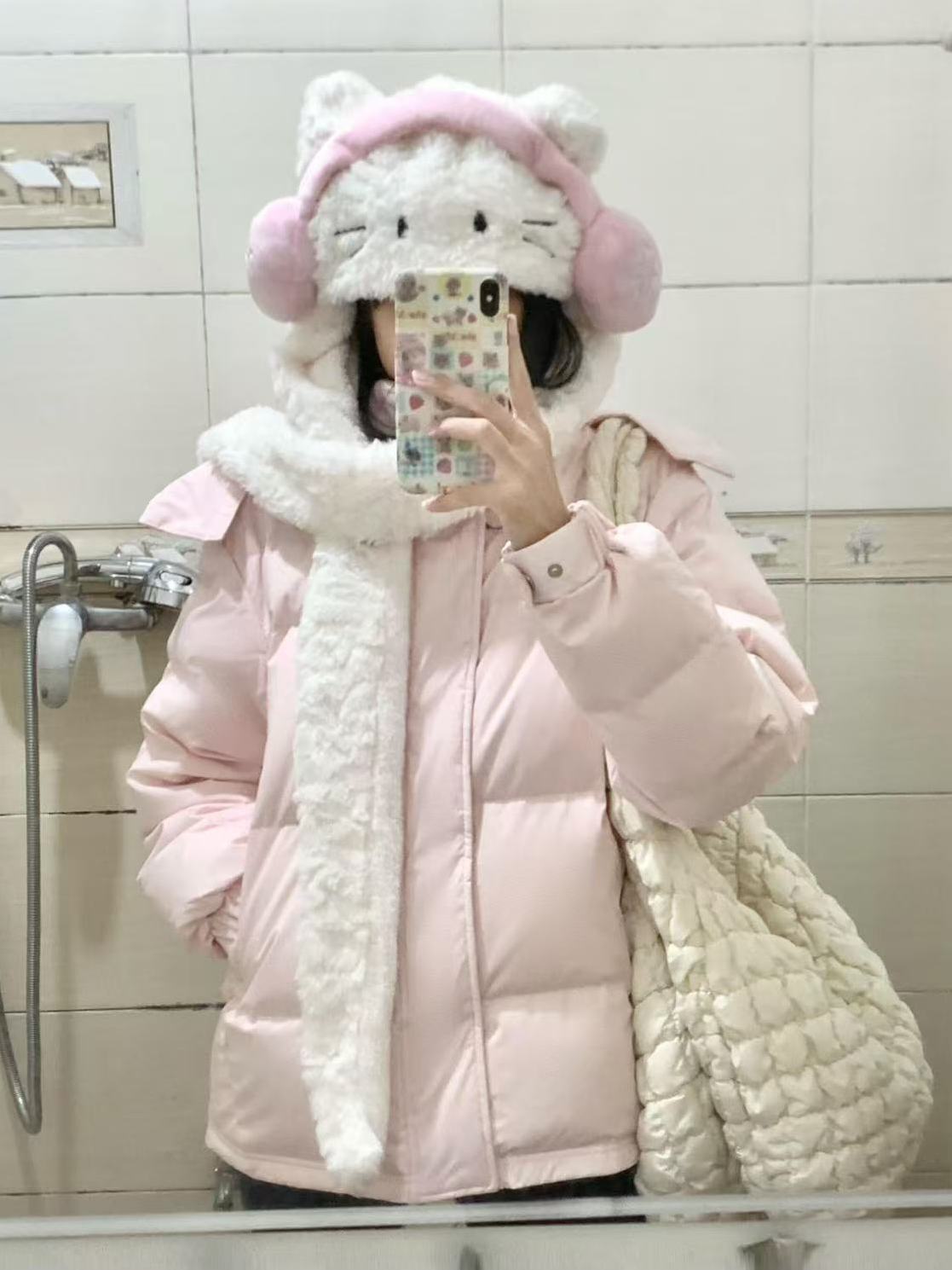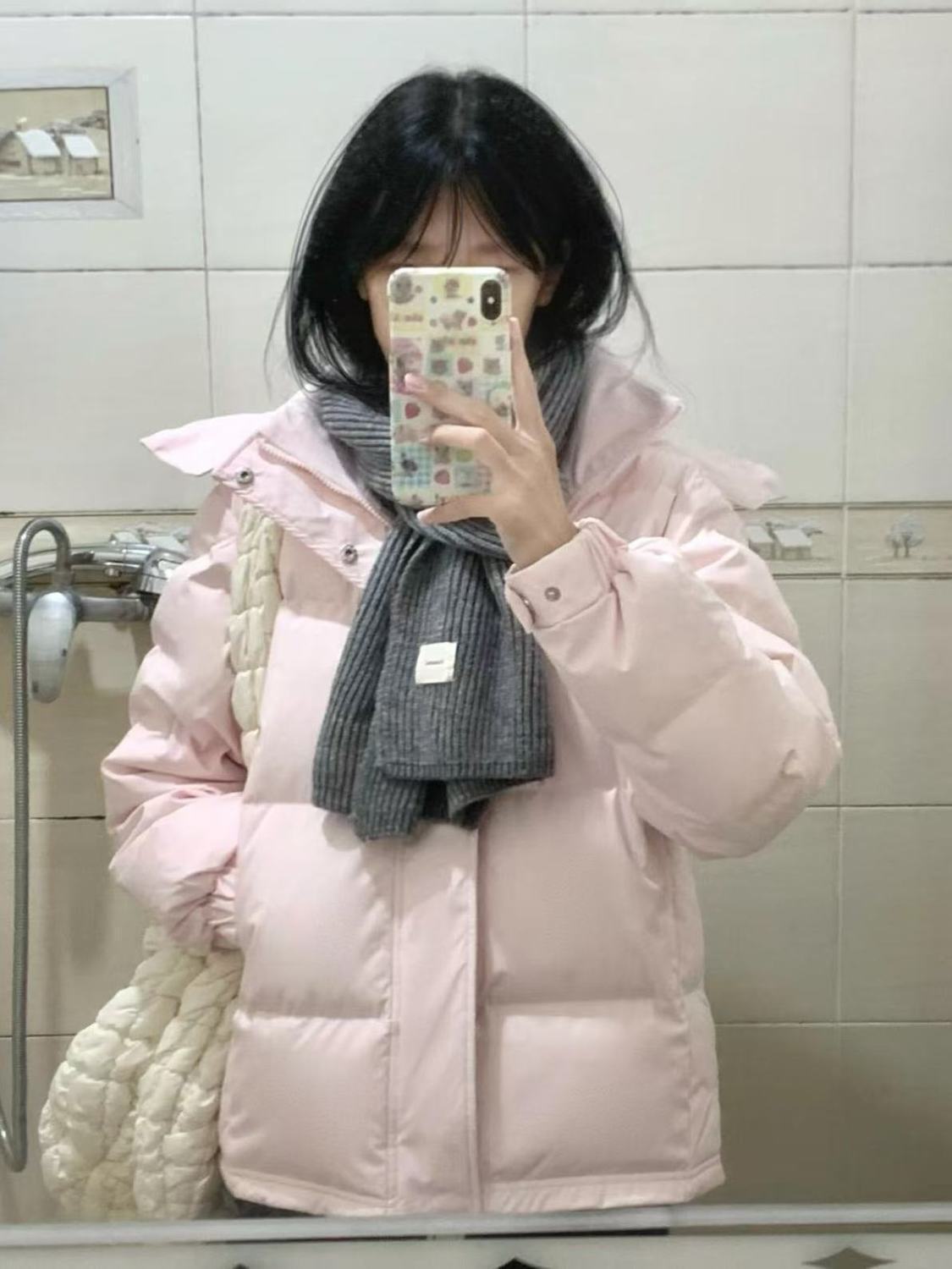 優しい風のピンクの帽子の保温綿服のコートの女性の冬の新型の百合はやせてゆったりしているファッションのパンの服の潮を現します。