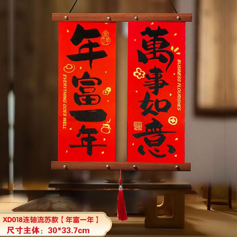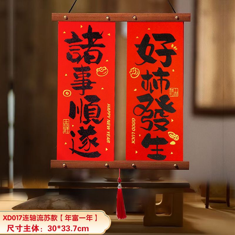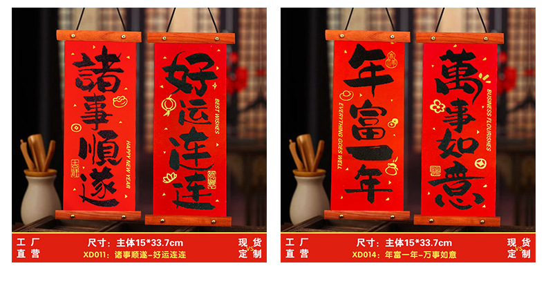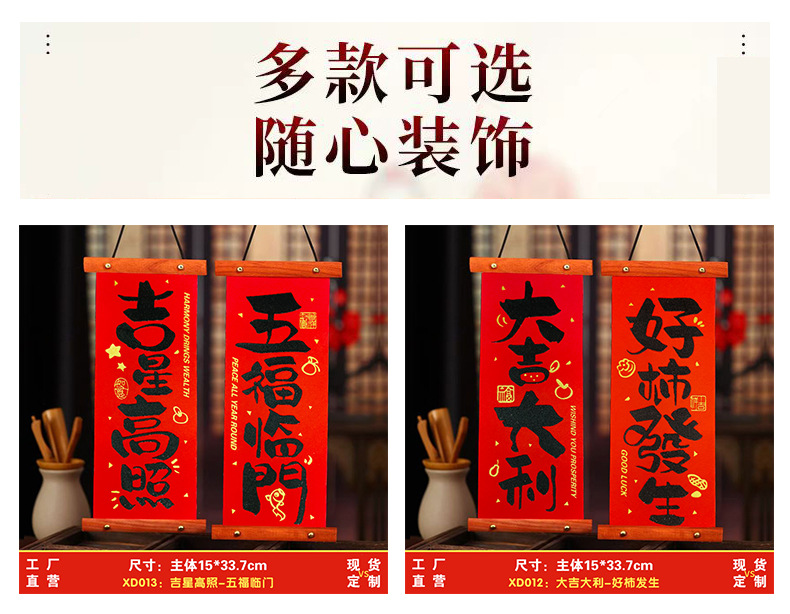 厂家木质挂轴绒布烫金小对联定制做乔迁新年福字入户装饰挥春批发