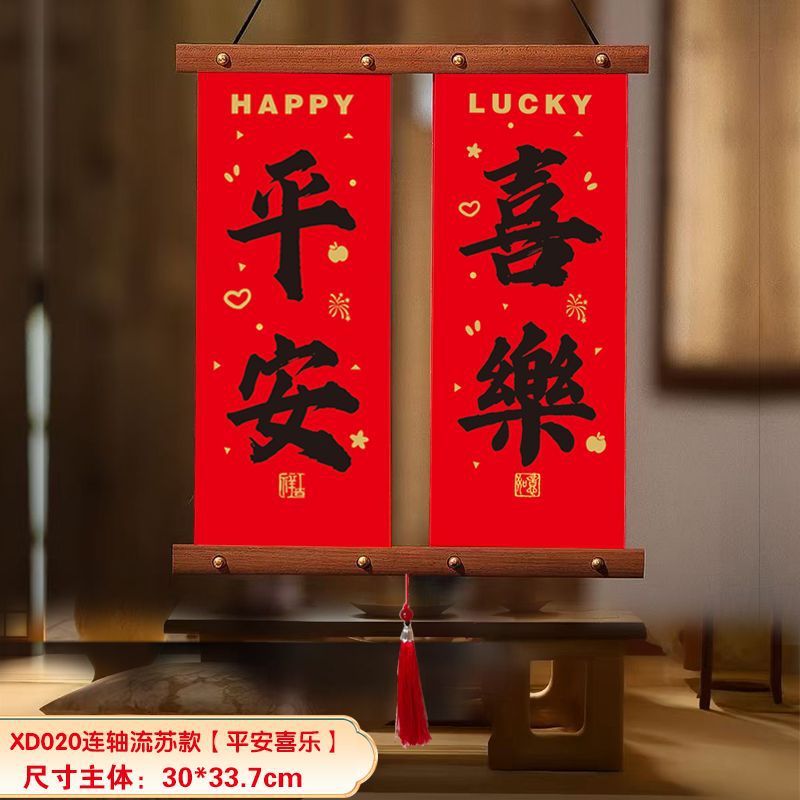 2025年新年実木掛け軸対聯喬迁の喜家装飾ストラップ旧正月玄関客間春聯ストラップ