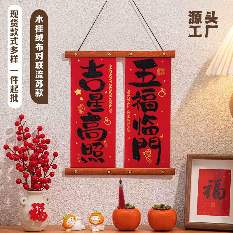 2026新年绒布对联挂件过年装饰品挂件入户门迷你对联春节用品批货