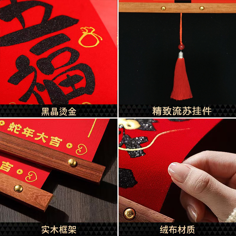 2025年新商品 金箔入りベルベット木製掛け軸春節春聯ギフトボックス 新築祝い 家庭用玄関飾り 小型春聯 祝福