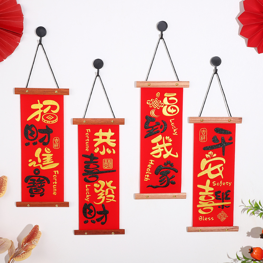 2025年新年装飾対聯春聯木質絨布ストラップ