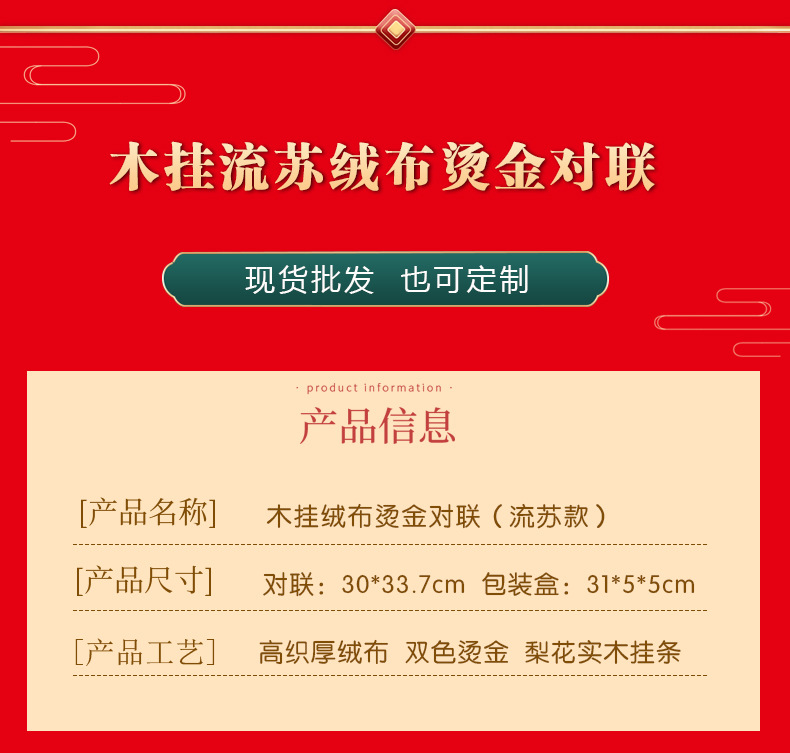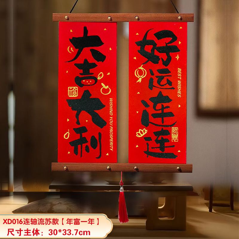 新デザインの金箔入りベルベット木製掛け軸、小さな対聯、広告、カスタムメイド、家庭用、新築祝い、春の飾り、卸売