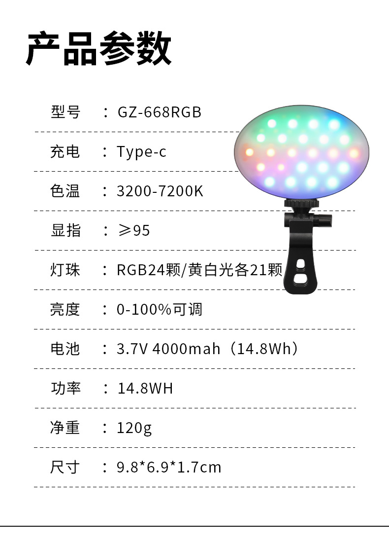 迷你便携补光灯自拍直播摄影rgb手机直播拍照视频打光灯led口袋灯