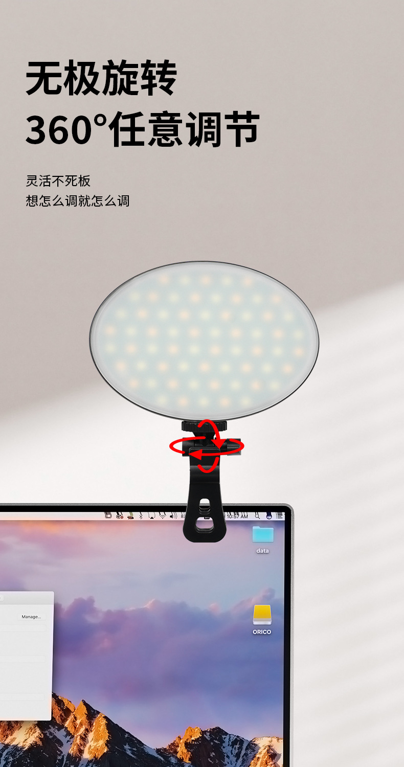 跨境VL-60AI视频会议直播多用补光灯手机电脑平板夹子小型便携灯