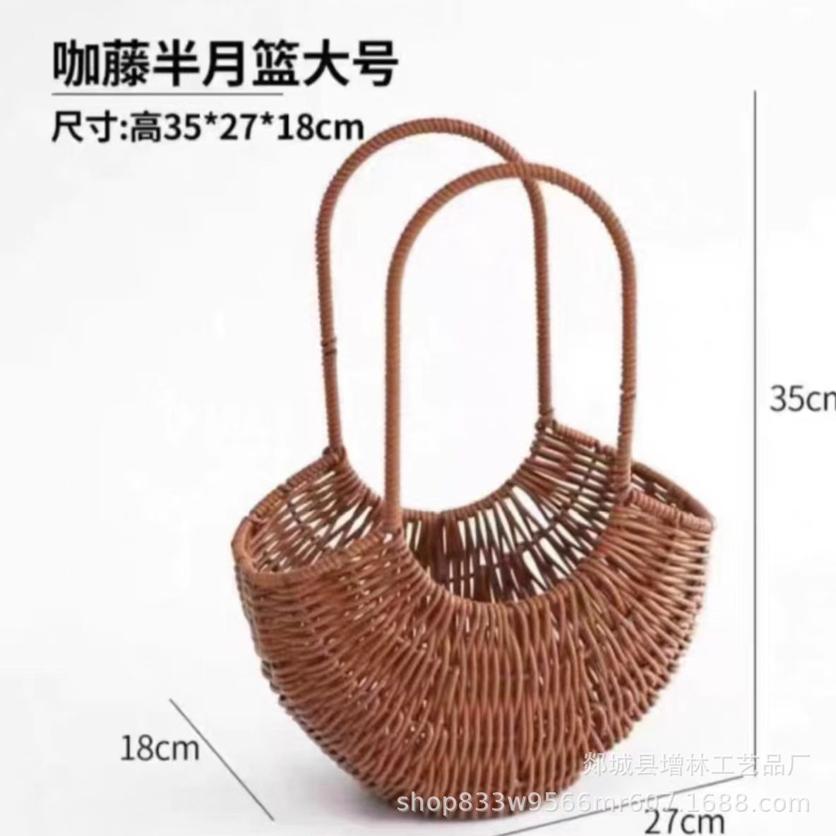 田園風藤編み手提げ花かごプラスチック模造藤手編みバスケット花芸生け花バスケット半月バスケット卸売り