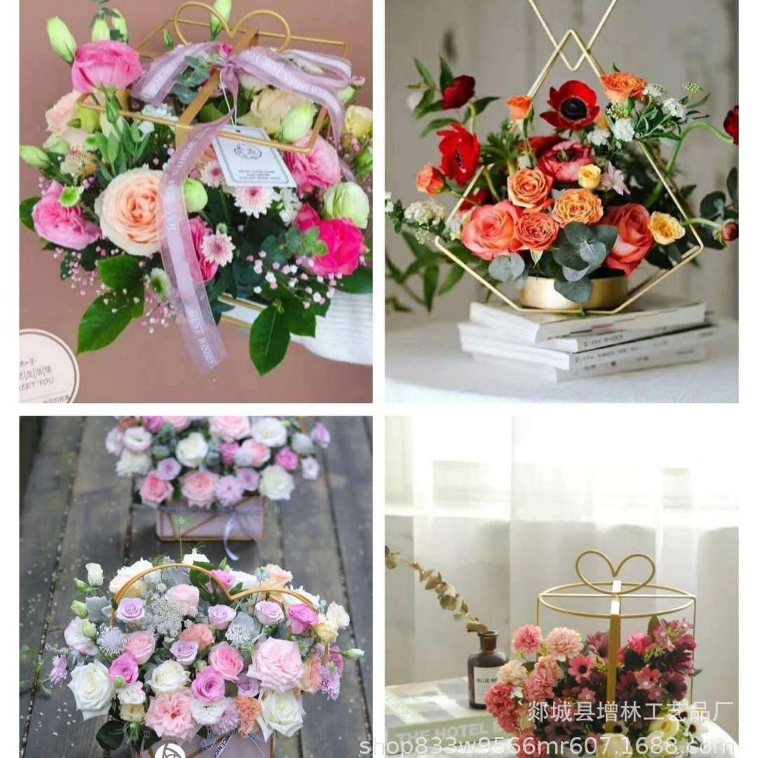 メーカー直供金属花籠鉄芸金メッキ愛花架幾何学手提げ花籠花箱生花包装花礼