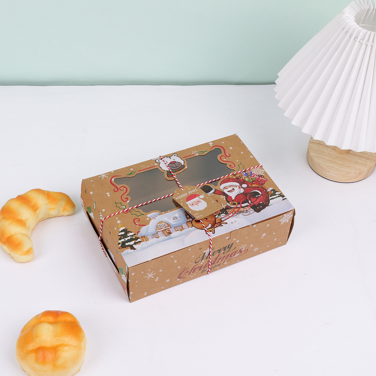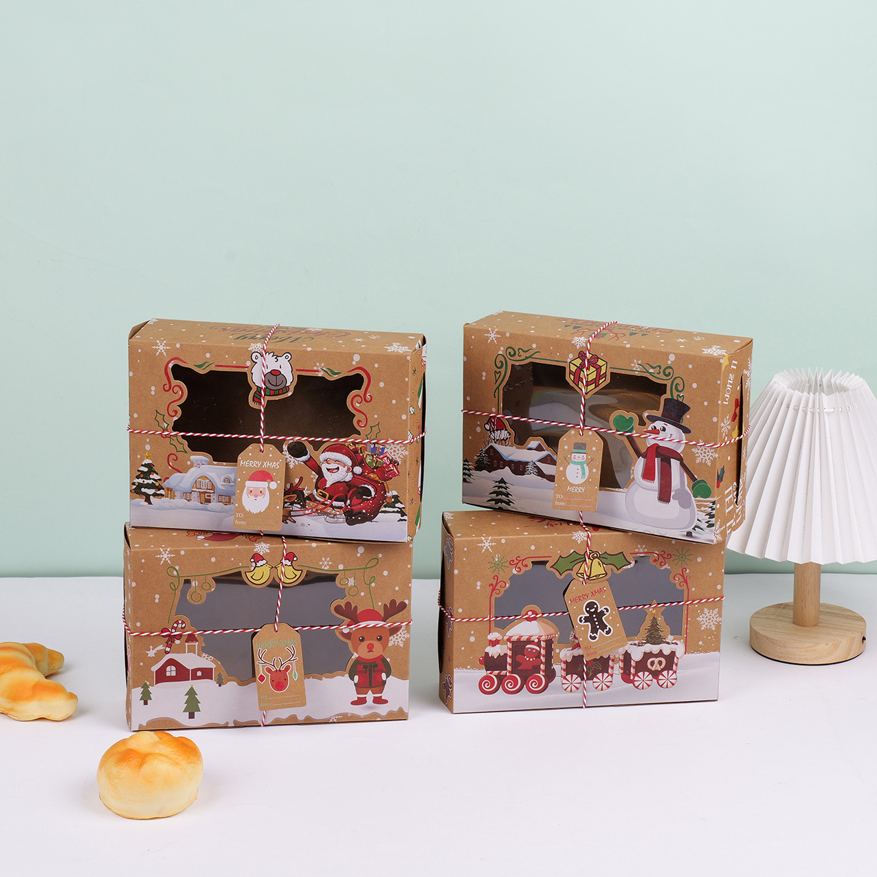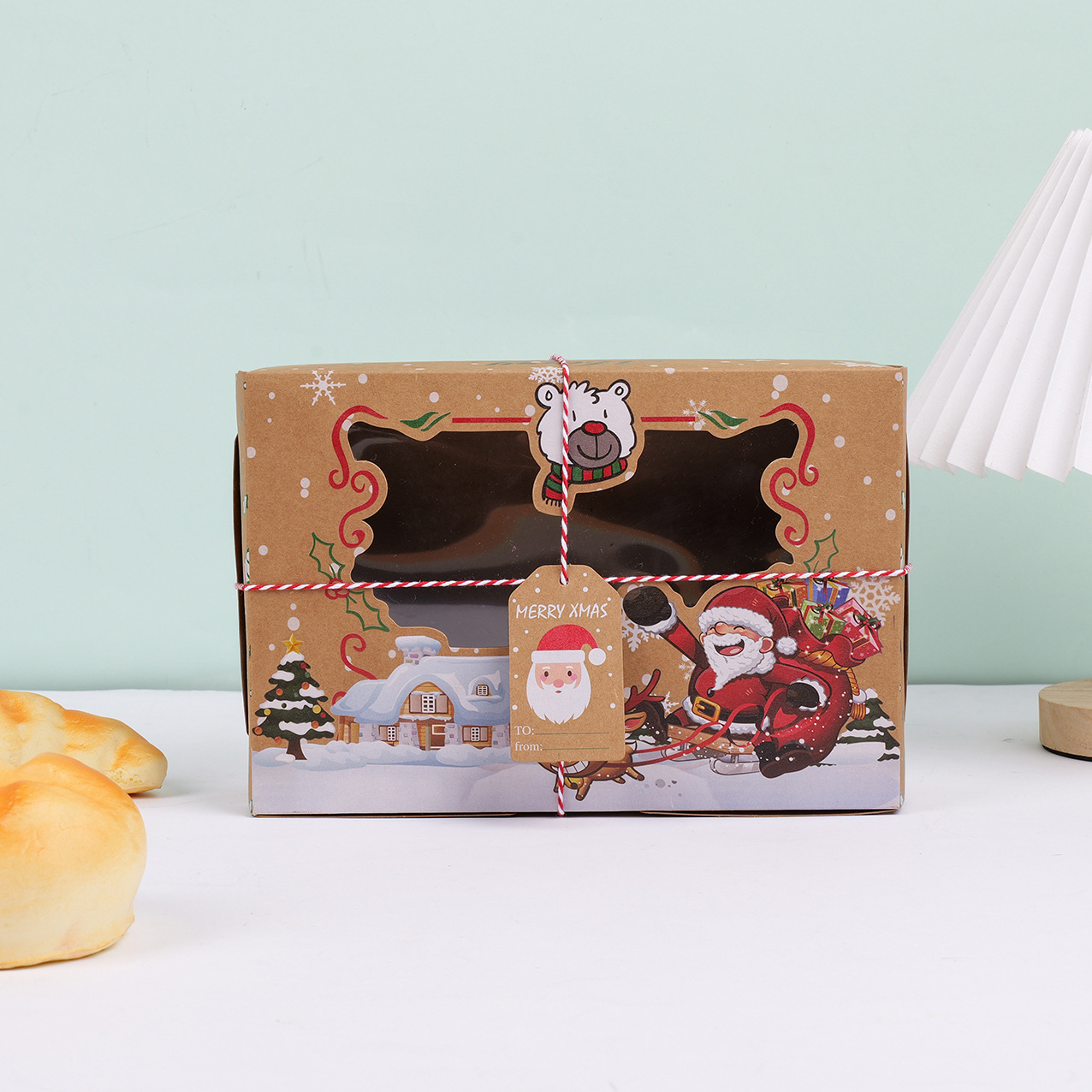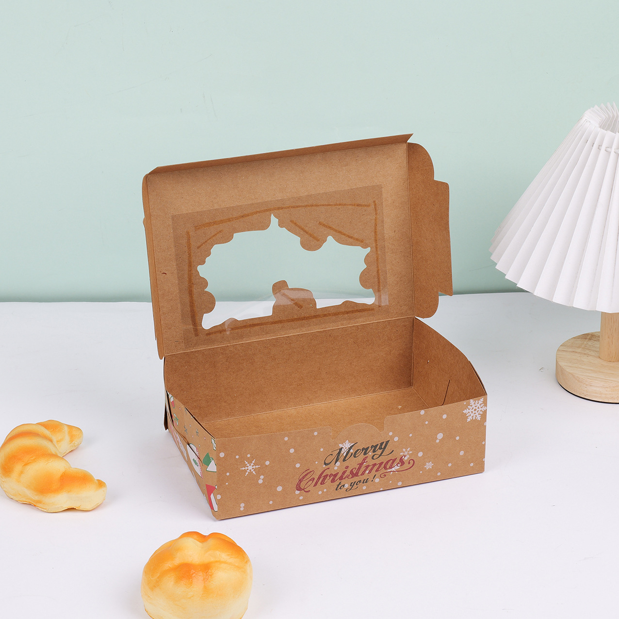 クリスマスケーキボックスマフィンカップベーキングデザートポータブル包装箱窓クラフト紙洋菓子包装ギフトボックス