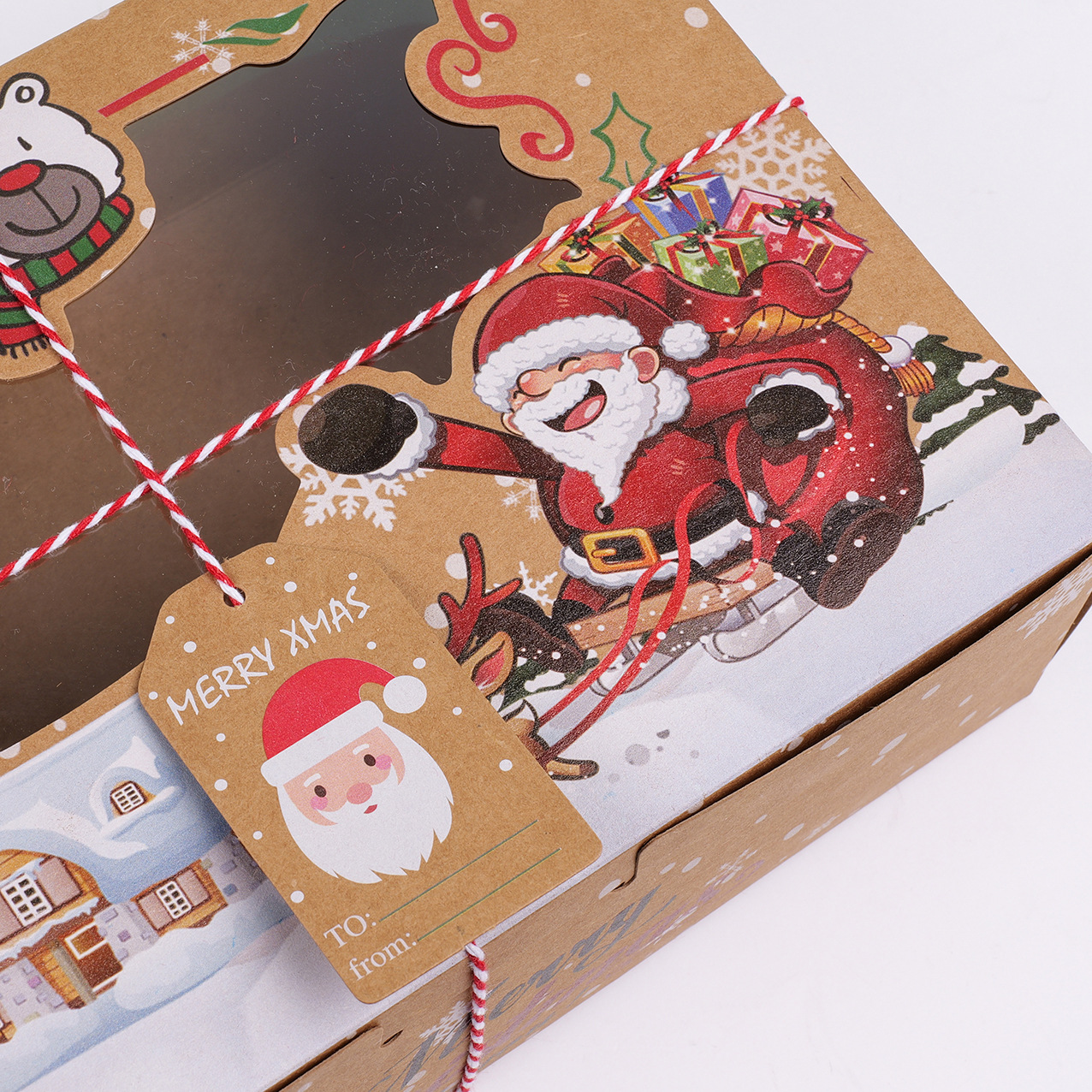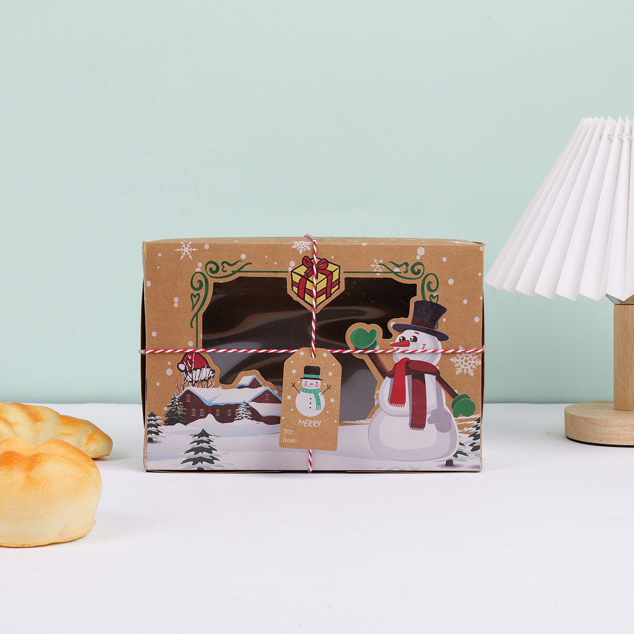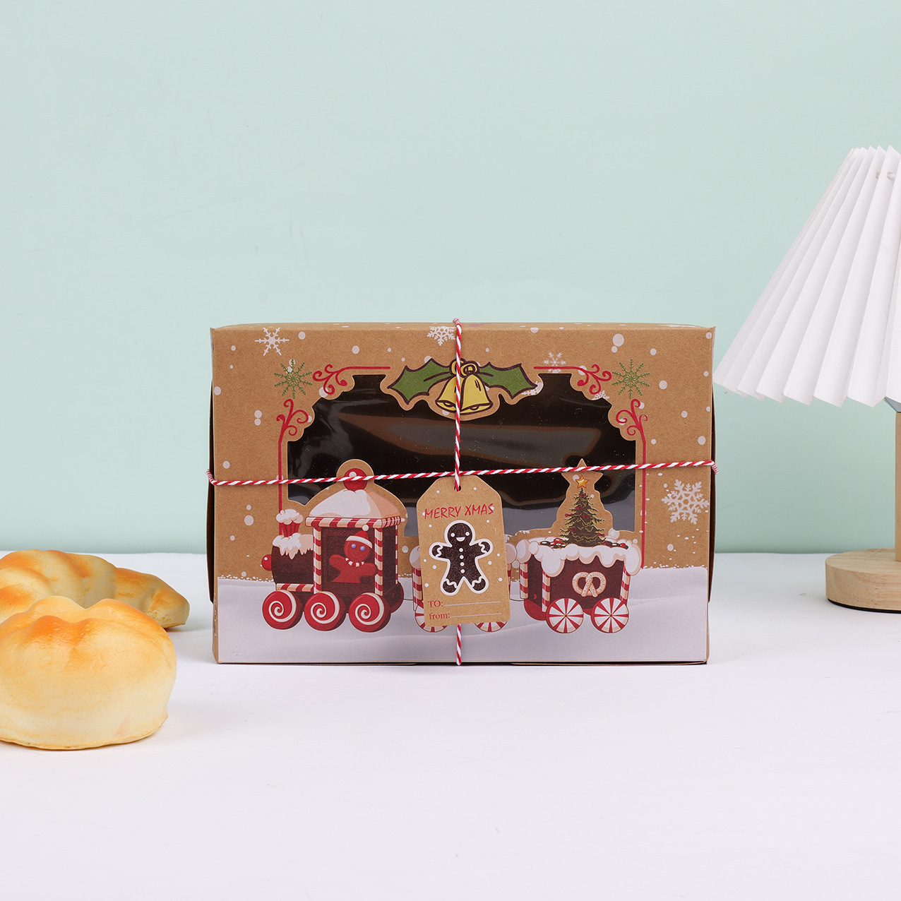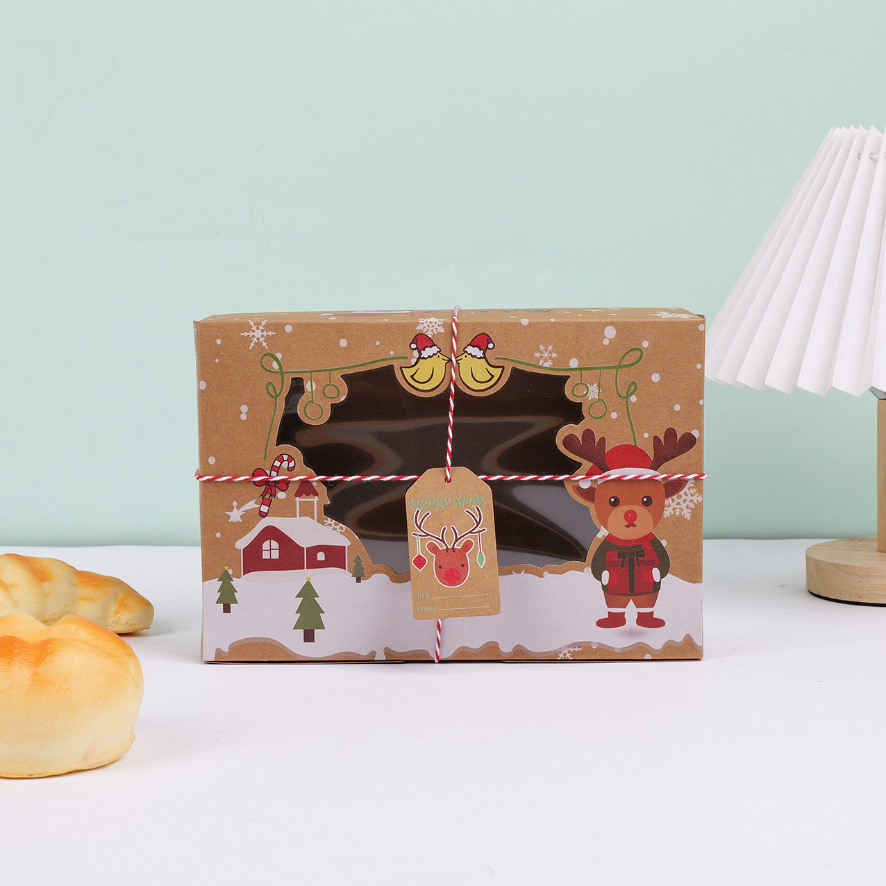 クリスマスケーキボックスマフィンカップベーキングデザートポータブル包装箱窓クラフト紙洋菓子包装ギフトボックス
