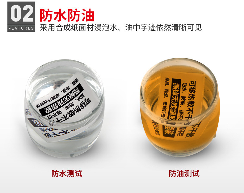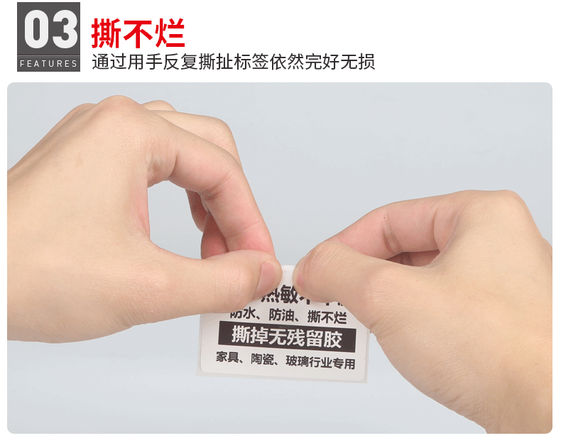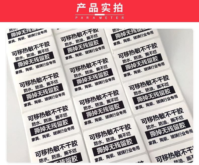五防合成移動可能な感熱テープは、糊を残さずに引き裂かない防水ラベル紙家具ラベル紙を取り除くことができる