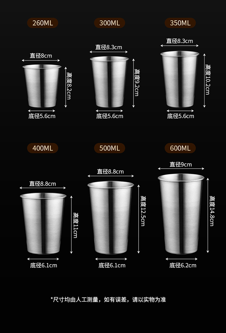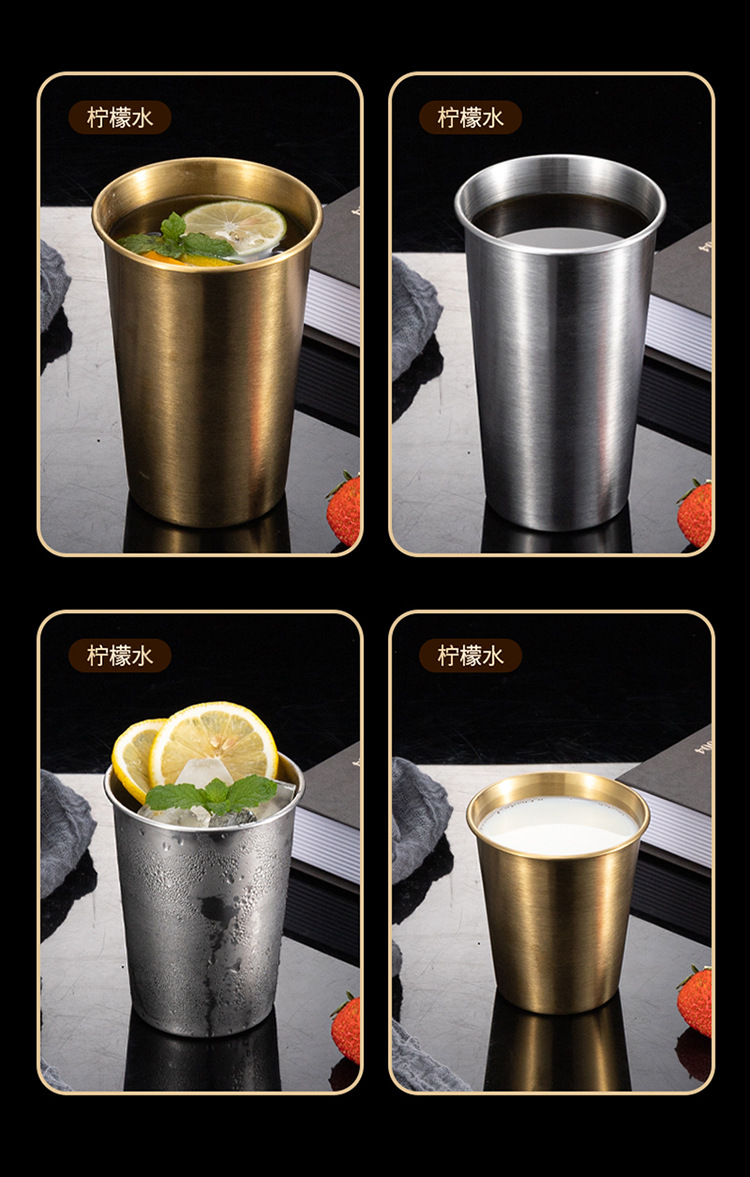 亚马逊 304不锈钢啤酒杯便捷冷饮杯单层卷边创意杯简约便利杯酒杯