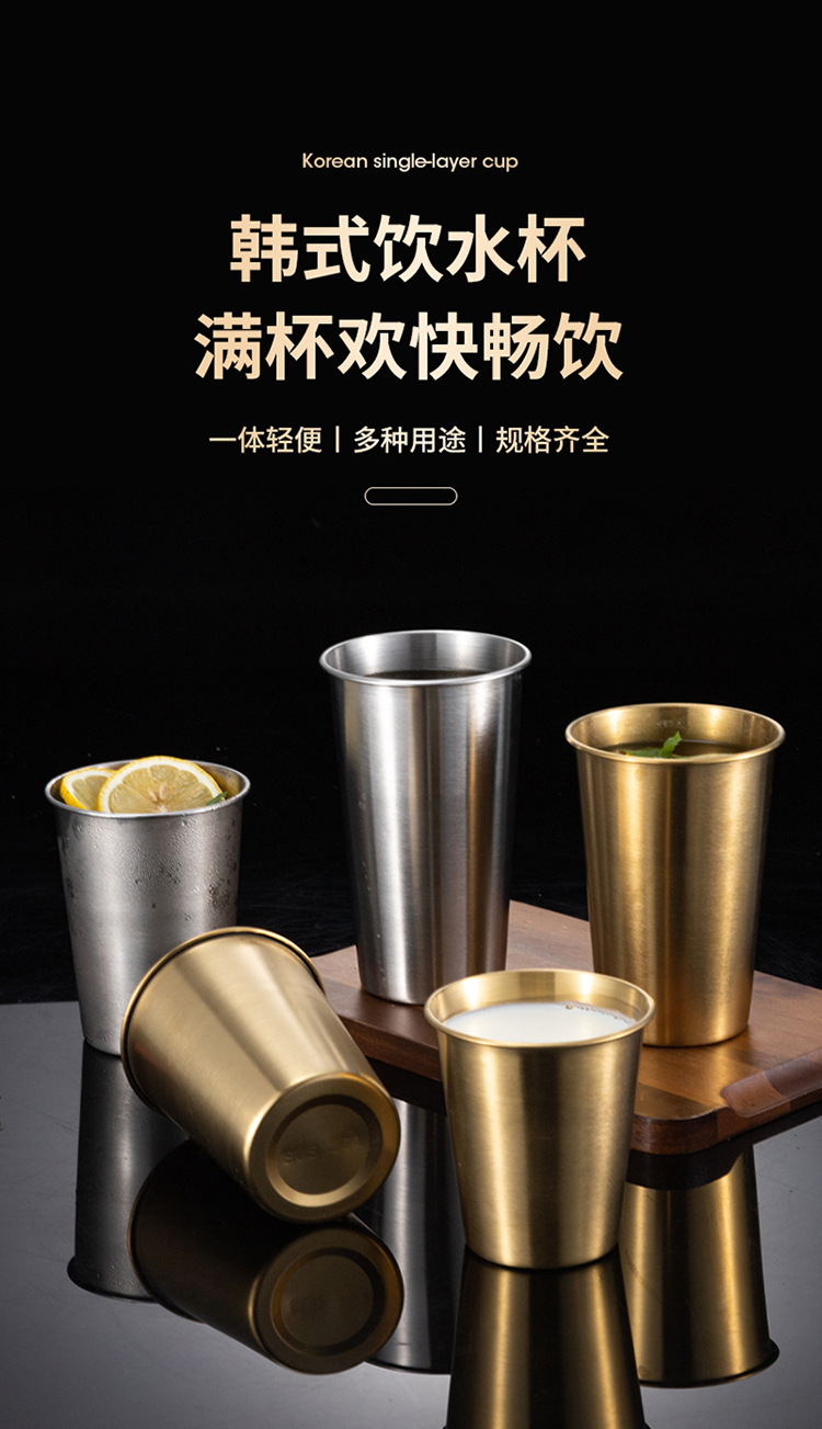 クロスボーダー 304 ステンレス鋼ビールカップ大容量単層ウォーターカップカーリングワイングラスミルクティーコーヒーカップ口カップロゴ