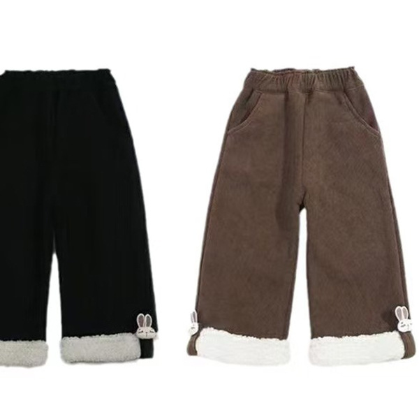 子供用の新しい冬用ベルベットパンツ、厚手のワンピースアウタースポーツパンツ、刺繍入りリボン付きスウェットパンツ、暖かい冬用