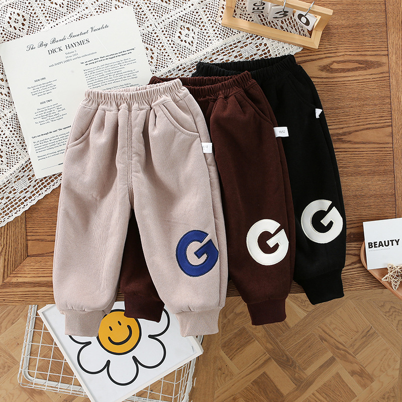 子供用ズボンカジュアルパンツトレーニングパンツベルベットg字フロントダブルタックベルベット