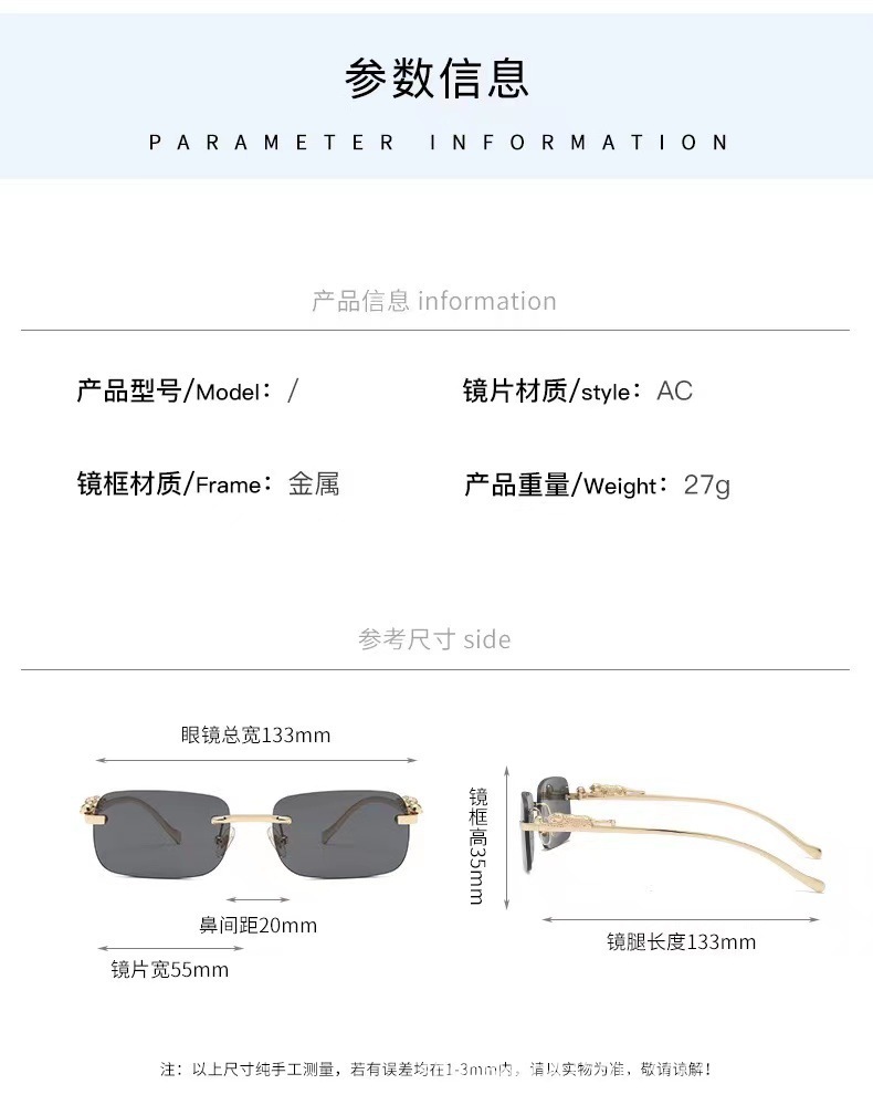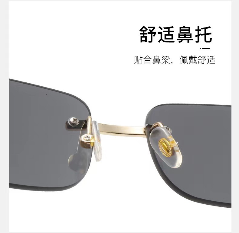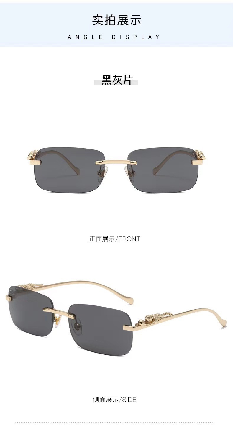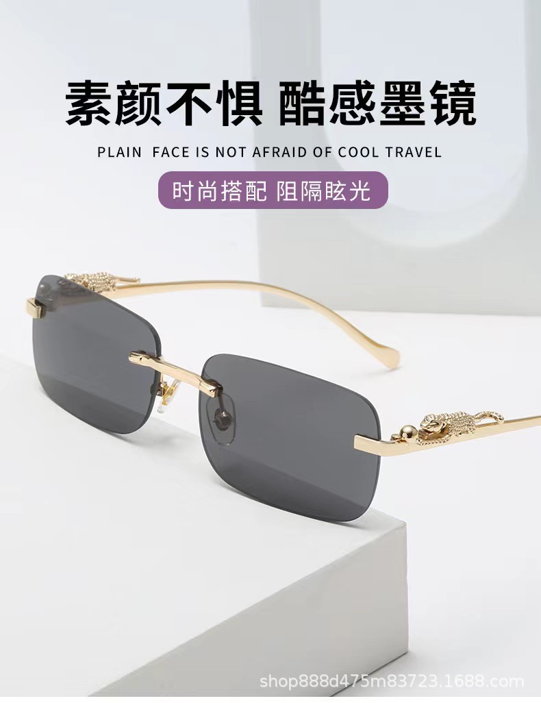 国境を越えた新型高級縁なしサングラス男潮個性小豹鏡脚サングラス卸売り