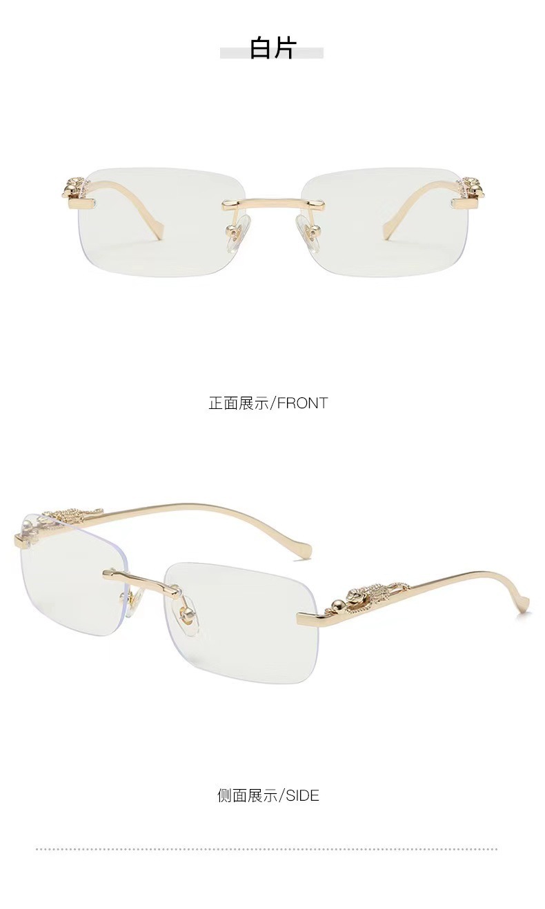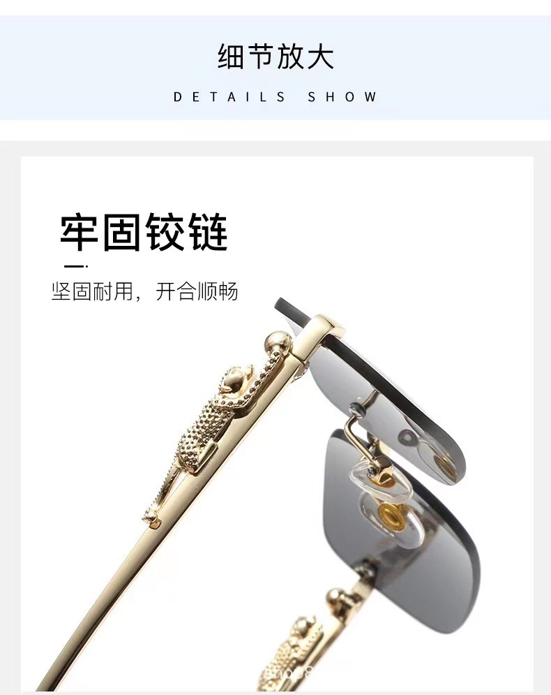 金属フレームレスメガネ個性チーター飾りエッジカットサングラスカラーレンズレトロサングラス変色サングラス