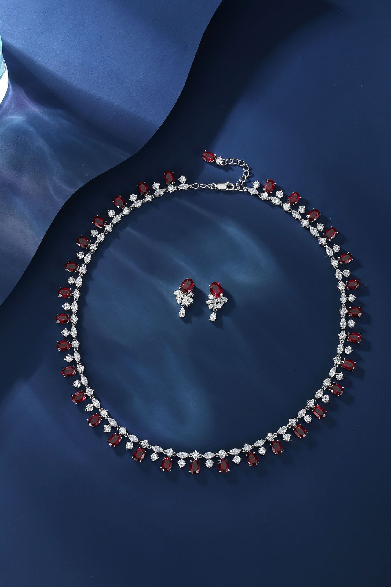 高珠系列跨境新品满钻花朵套装吊坠耳环奢华项圈S925银珠宝晚宴款
