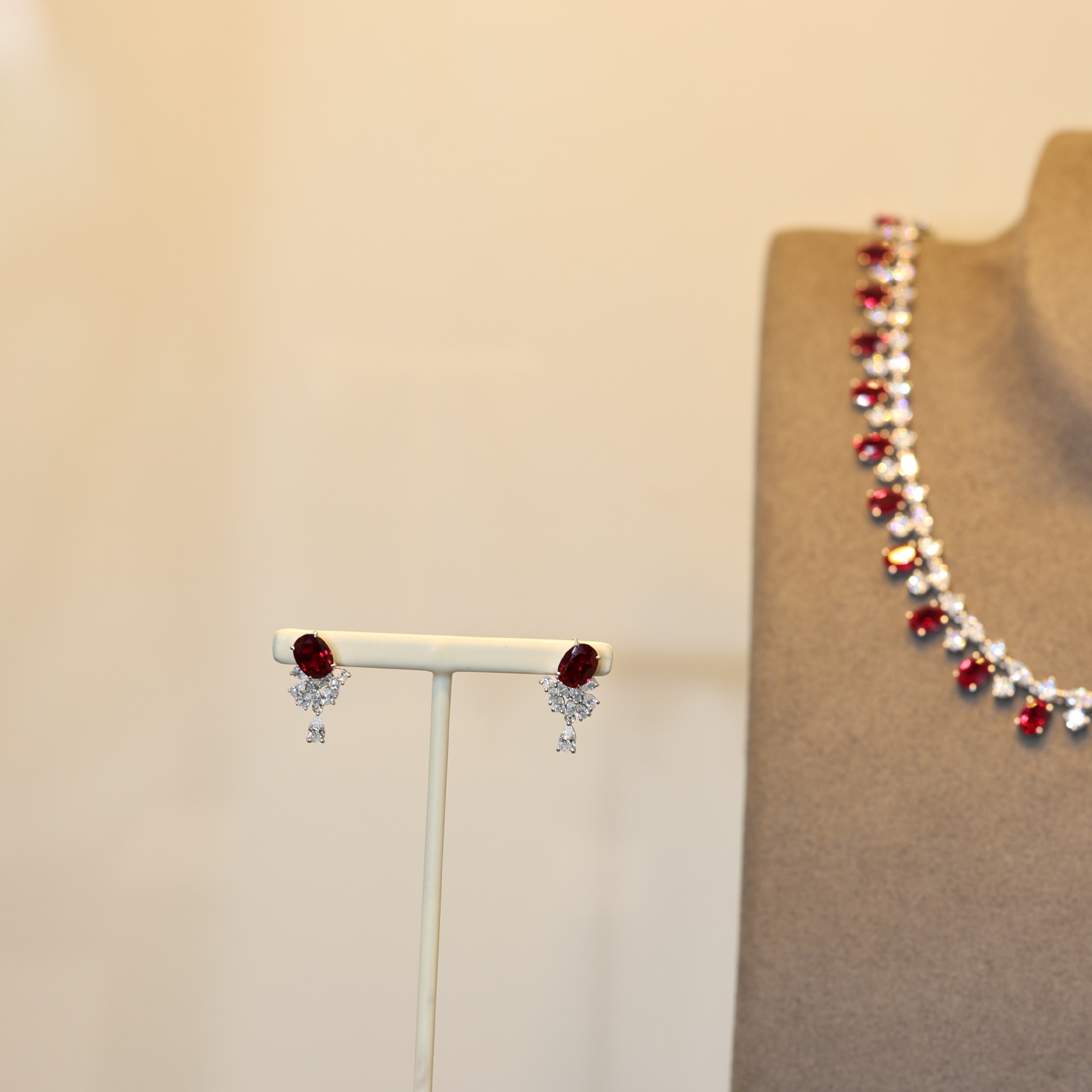 雰囲気のある美しい女性向けの3.3カラットの育成ルビーピアス、女性向けの新しいスタイルのイヤリング、通勤に多用途