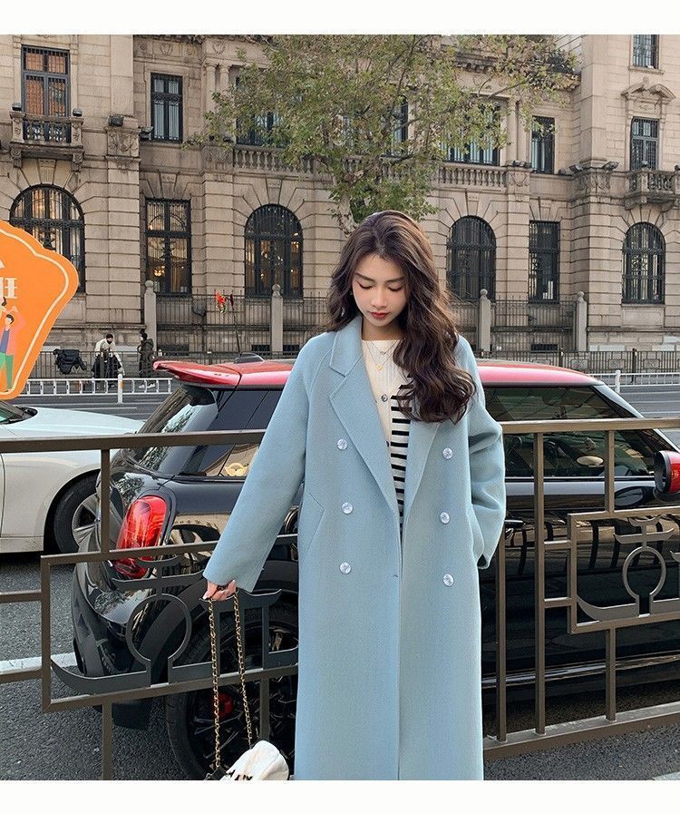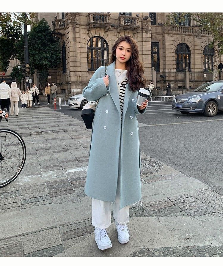 改良款,下单前请看实物蓝色呢子大衣女年秋冬新款韩版