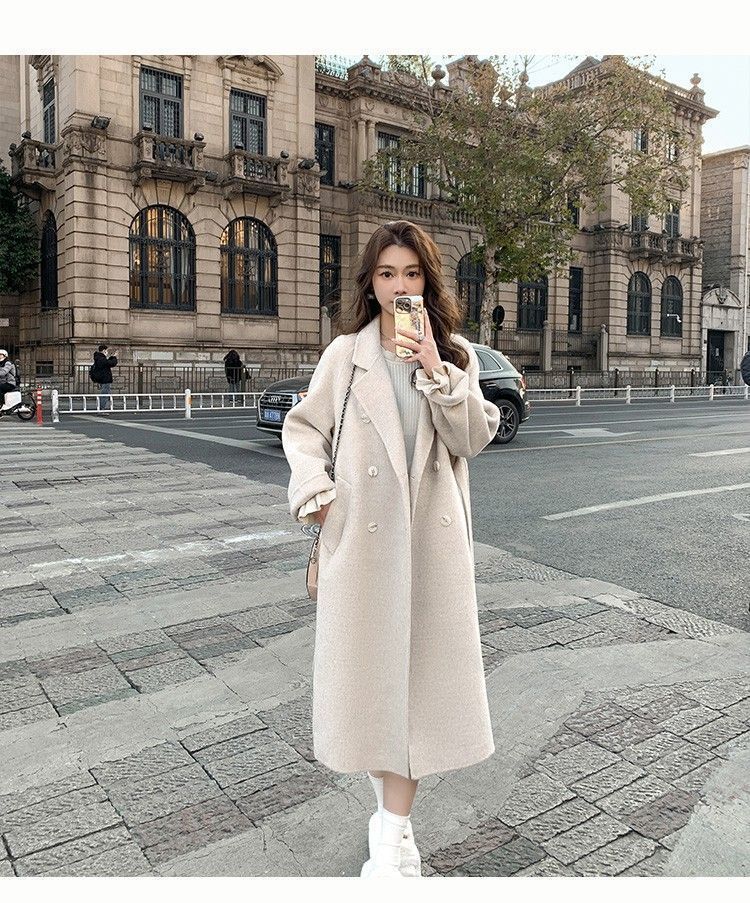 高級感のあるコートの女性の美ラードファッションの新型ダブルボタンのデザイン秋冬の毛のコートの中の長さ