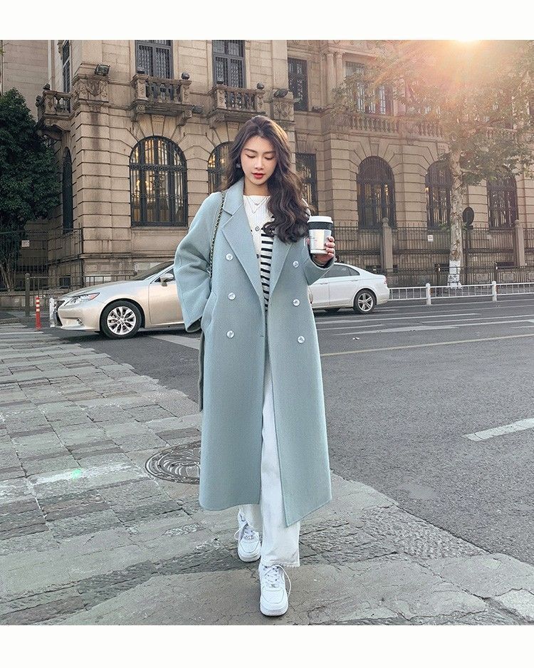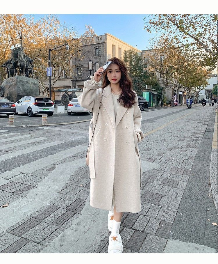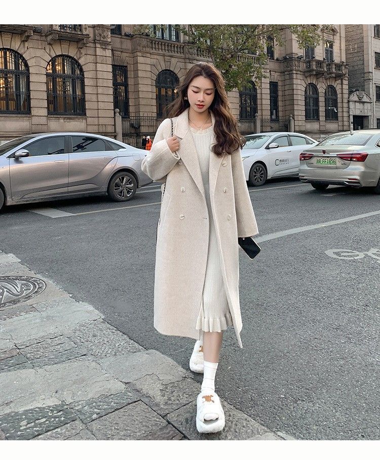 秋冬の新型の毛はコートの女性の中で長いタイプの膝を越えて身を修めるのはラシャのコートの高級な毛のコートの女性です。