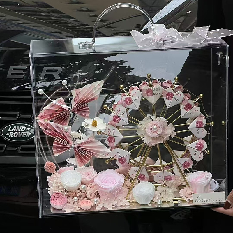 新しいインターネット有名人卒業シーズンスムーズ富花ギフトボックスアクリル透明ボックス手作り diy 材料卸売