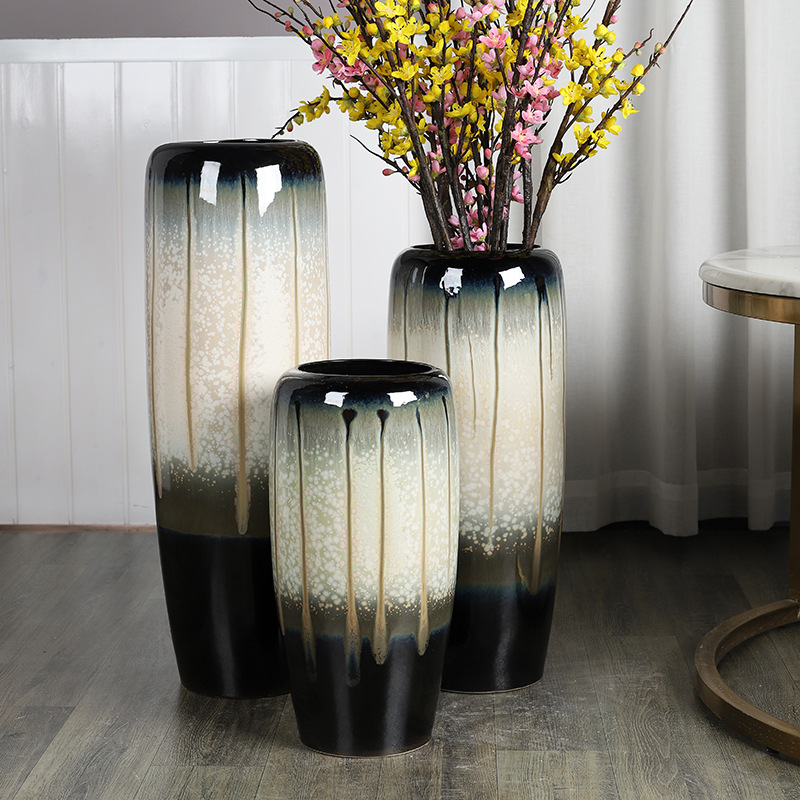 景徳鎮の陶磁器の着地の花瓶のアイデアの窯は大きい花瓶の客間のホテルの装飾の生け花の大きいサイズの花瓶の置物に変わります。