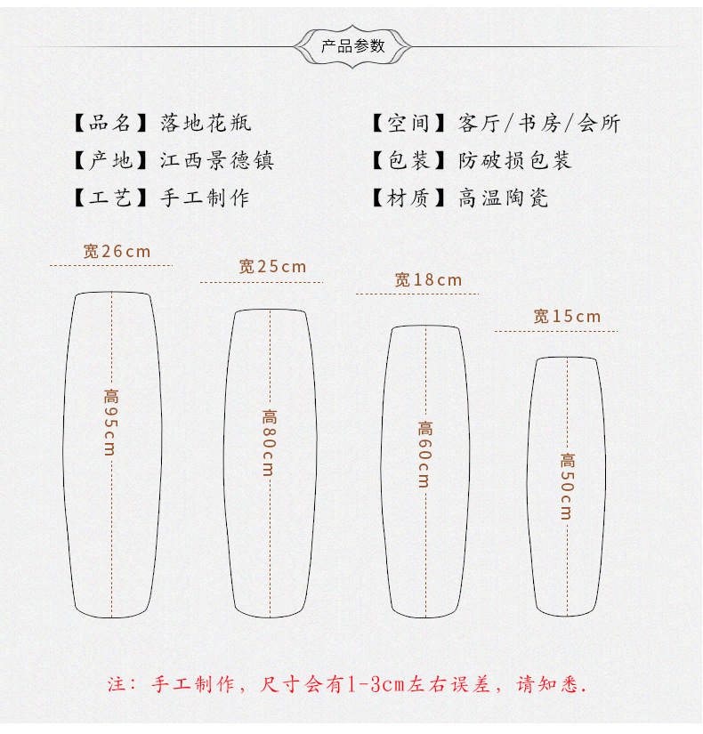 景徳鎮リビングルームライン床置きセラミック手作り大型花瓶花器ドライフラワーフラワーアレンジメントモダンな中国風のファッション装飾