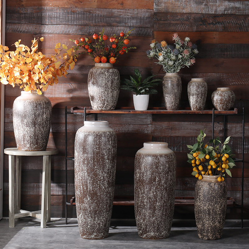 景徳鎮の陶磁器の花瓶のメーカーの手作業の粗い陶の缶の復古のノスタルジックな現代の簡単な植木鉢の乾いた花の生け花