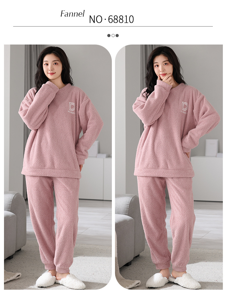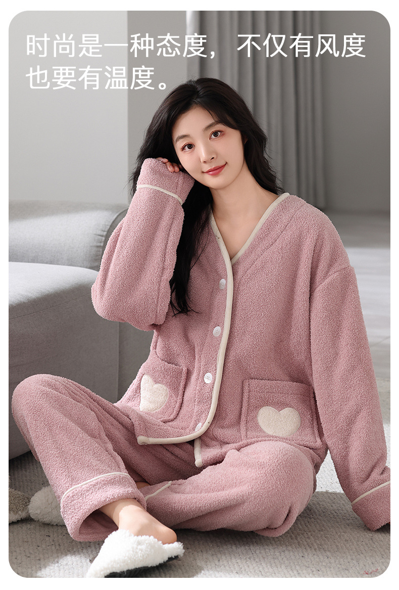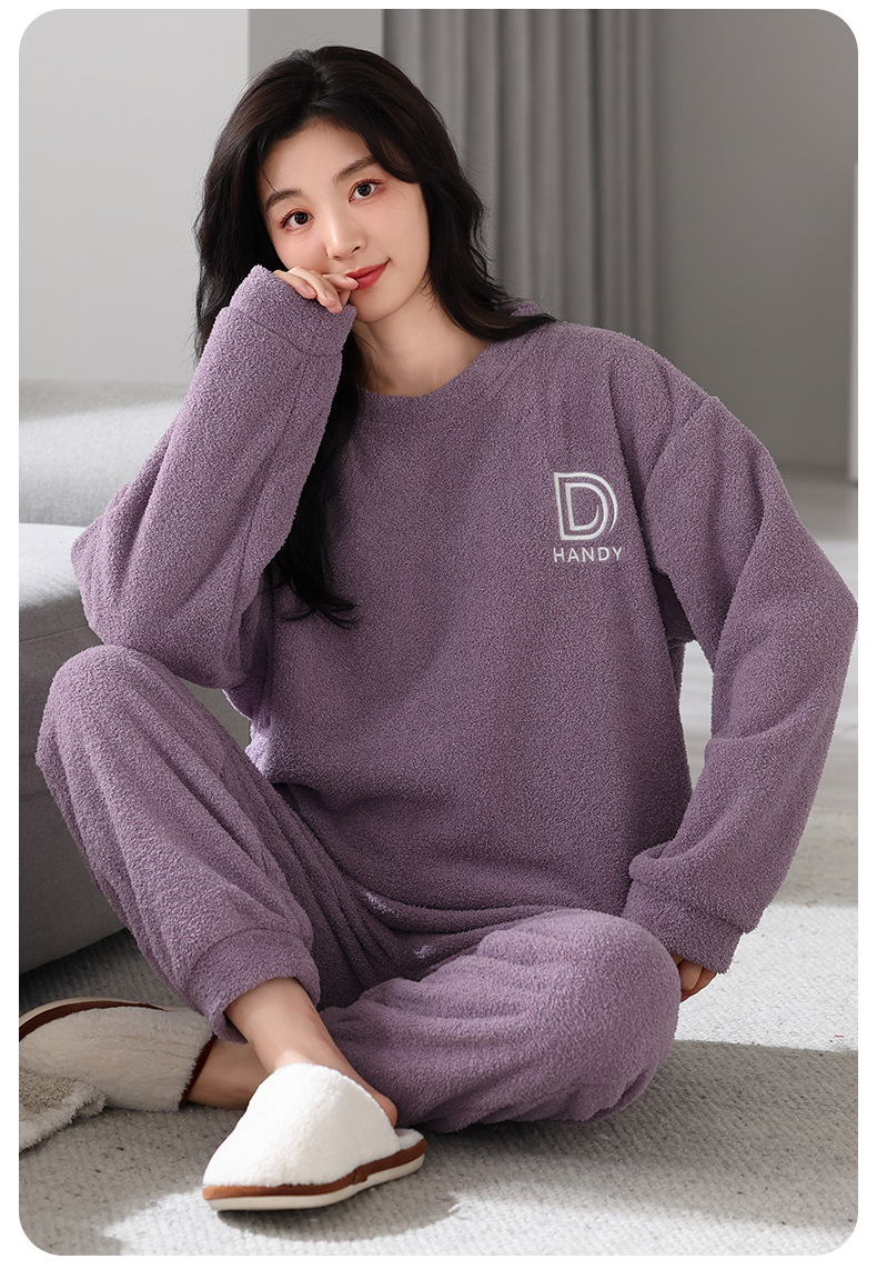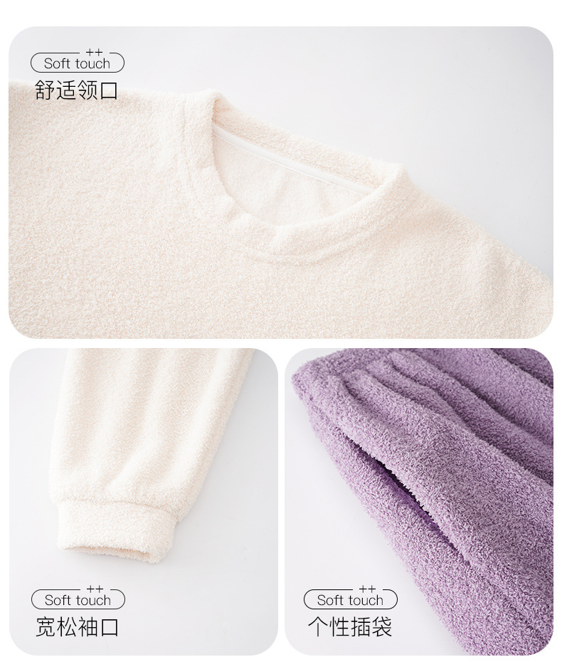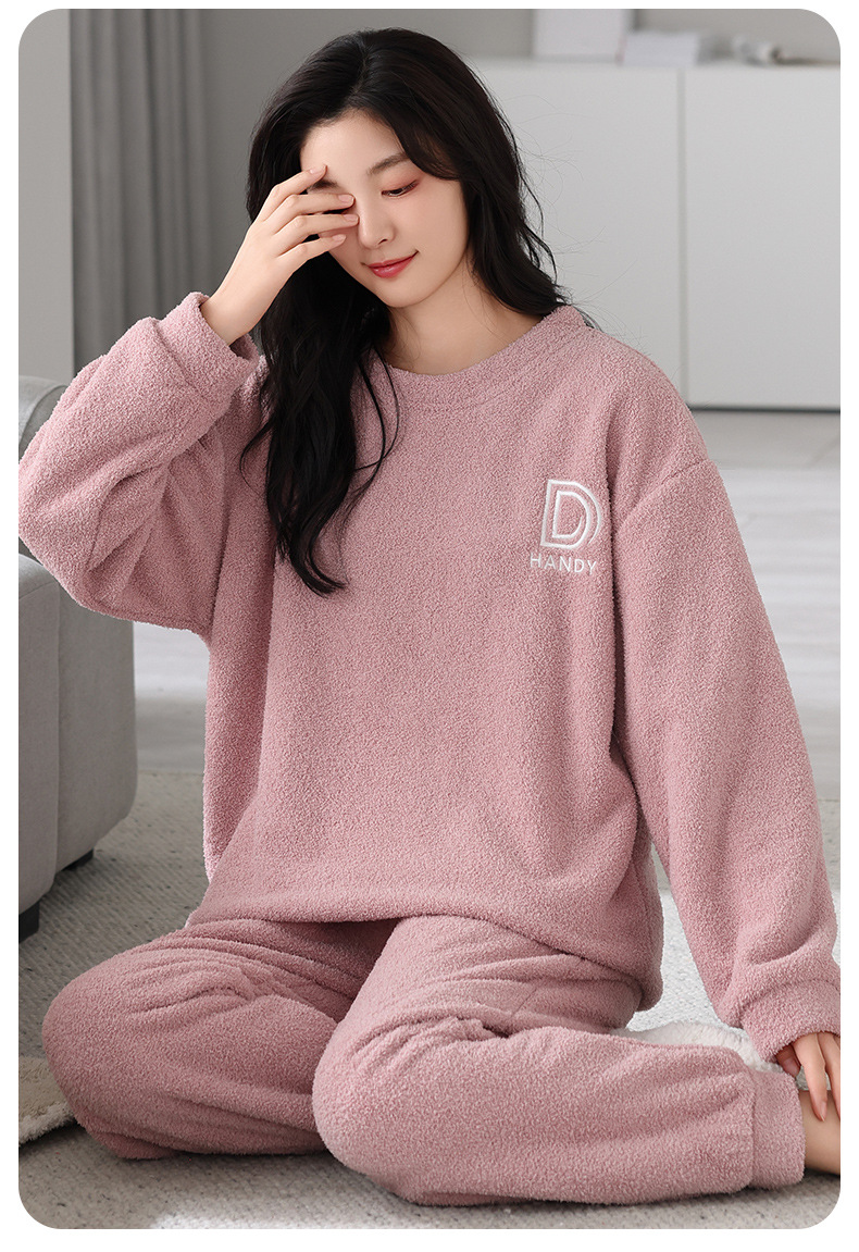 2024新韓版高級純色パジャマ女性冬金とベルベットの厚いニットの家庭服セットは外で着ることができる